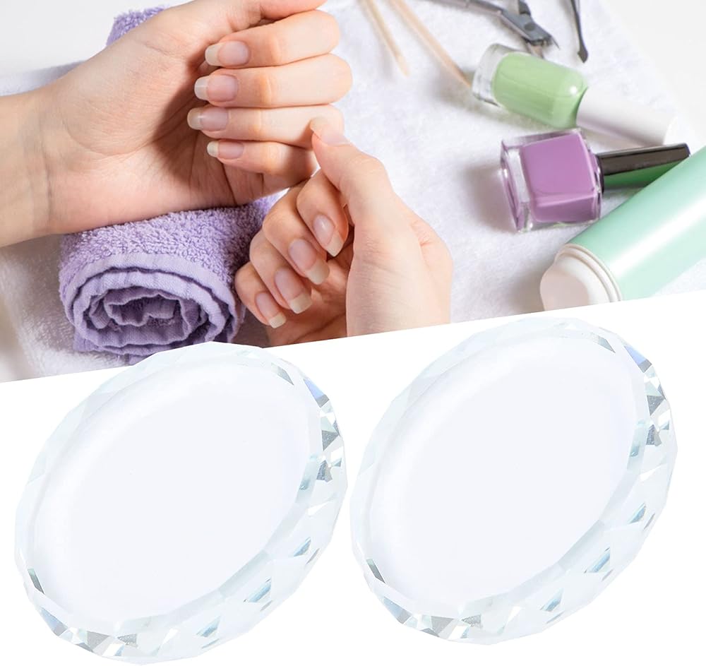 لوحة طلاء زجاجية قطعتين، لوحة مكياج زجاجية مقاس 1.97 بوصة لوحات طلاء أظافر مستديرة للمكياج وفن الأظافر والخلط والتلميع