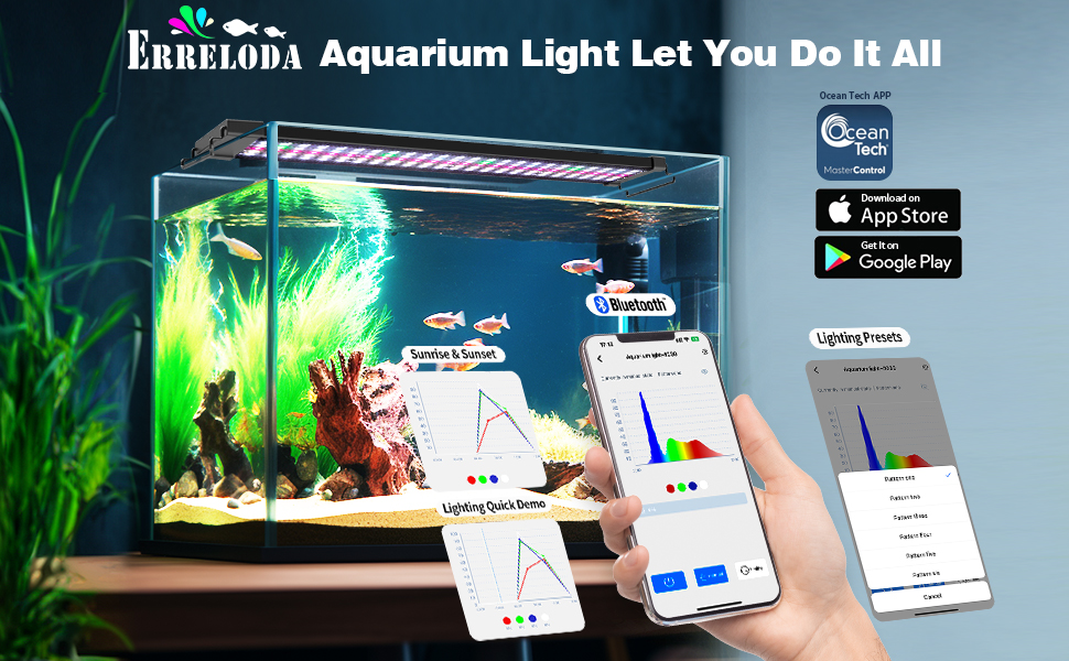 【إضاءة خزان أسماك المياه العذبة】تم تصميم مصباح حوض السمك للمياه العذبة Erreloda خصيصًا لخزانات المياه العذبة، مما يوفر مزيجًا احترافيًا من الضوء الأبيض والضوء الأحمر، يكمله لمسة من الضوء الأخضر والأزرق الخافت. هذا التركيب العلمي ضروري لصحة وألوان نابضة بالحياة لأسماك ونباتات المياه العذبة.