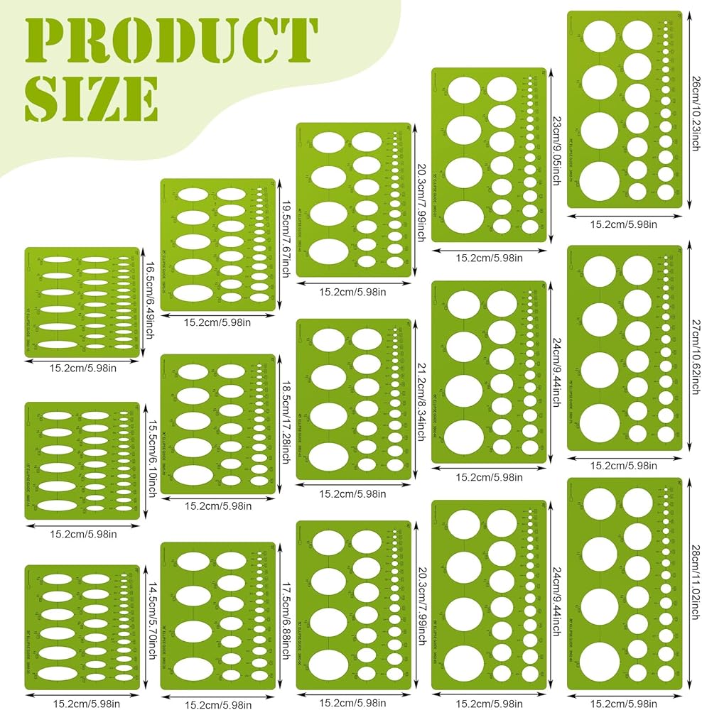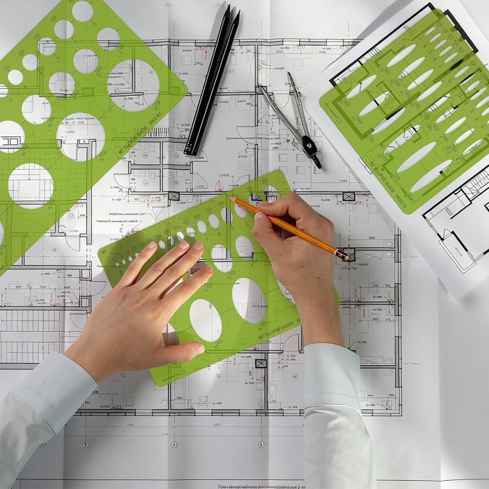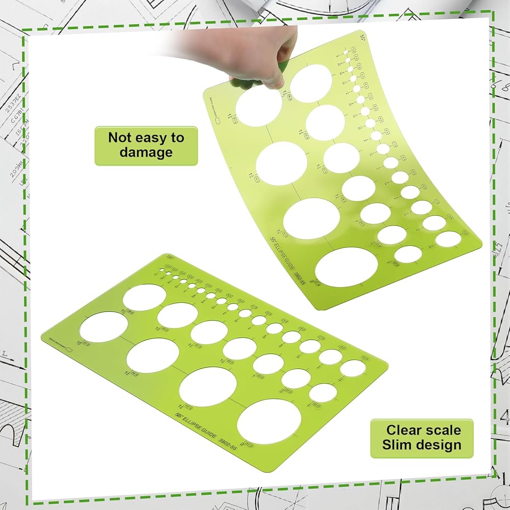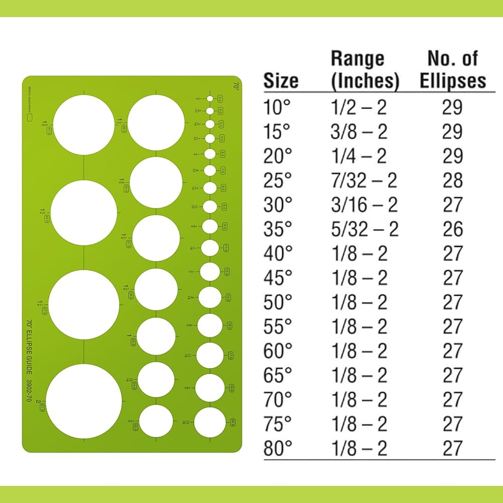 This ellipse guide template serves artists, architects, builders, interior designers, engineers, and students. The tools make any presentation more professional, concise, and geometrically accurate