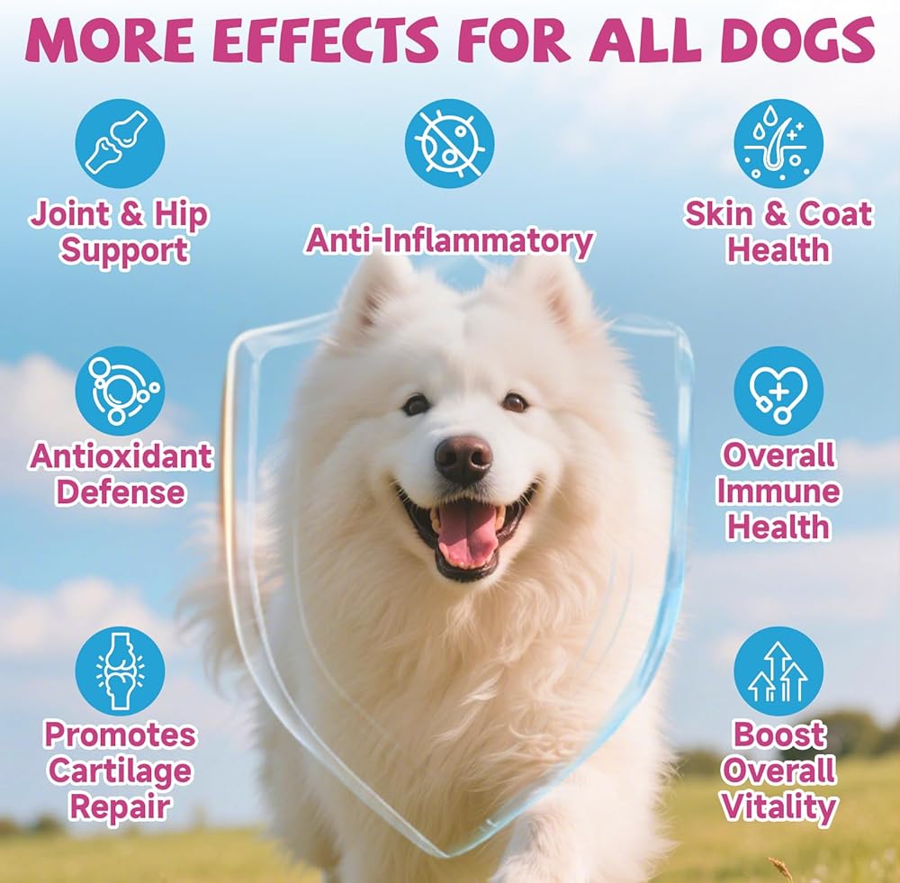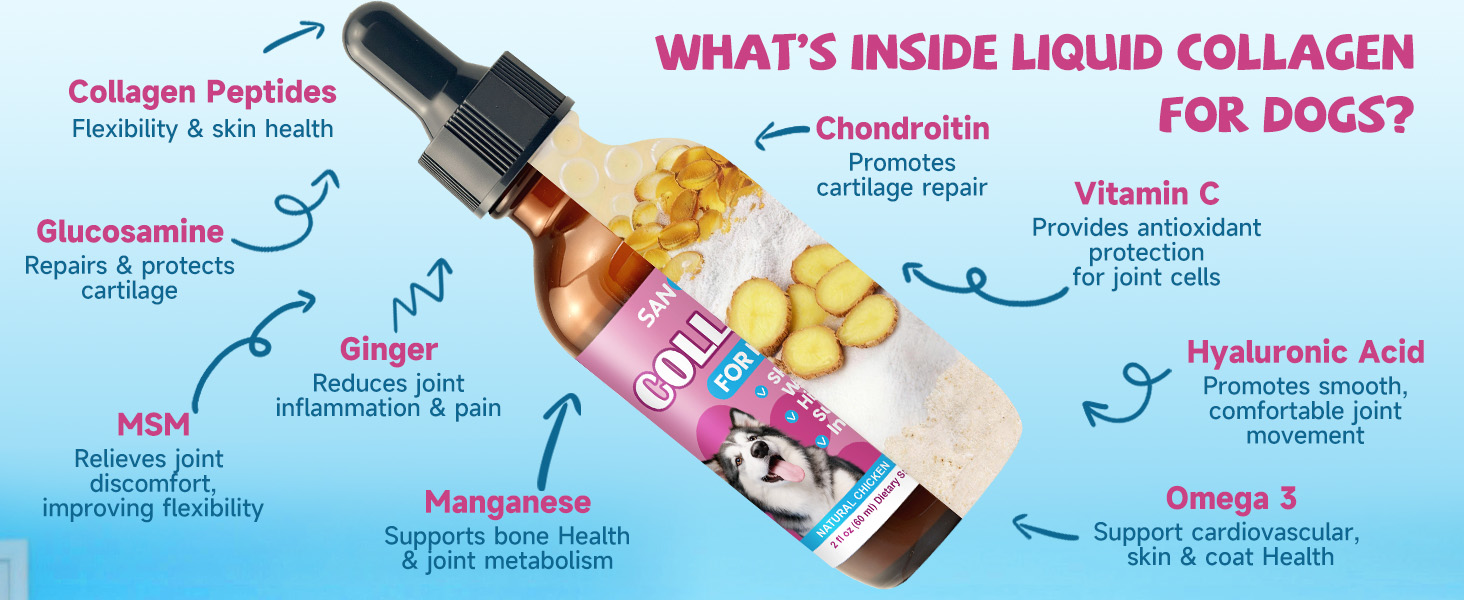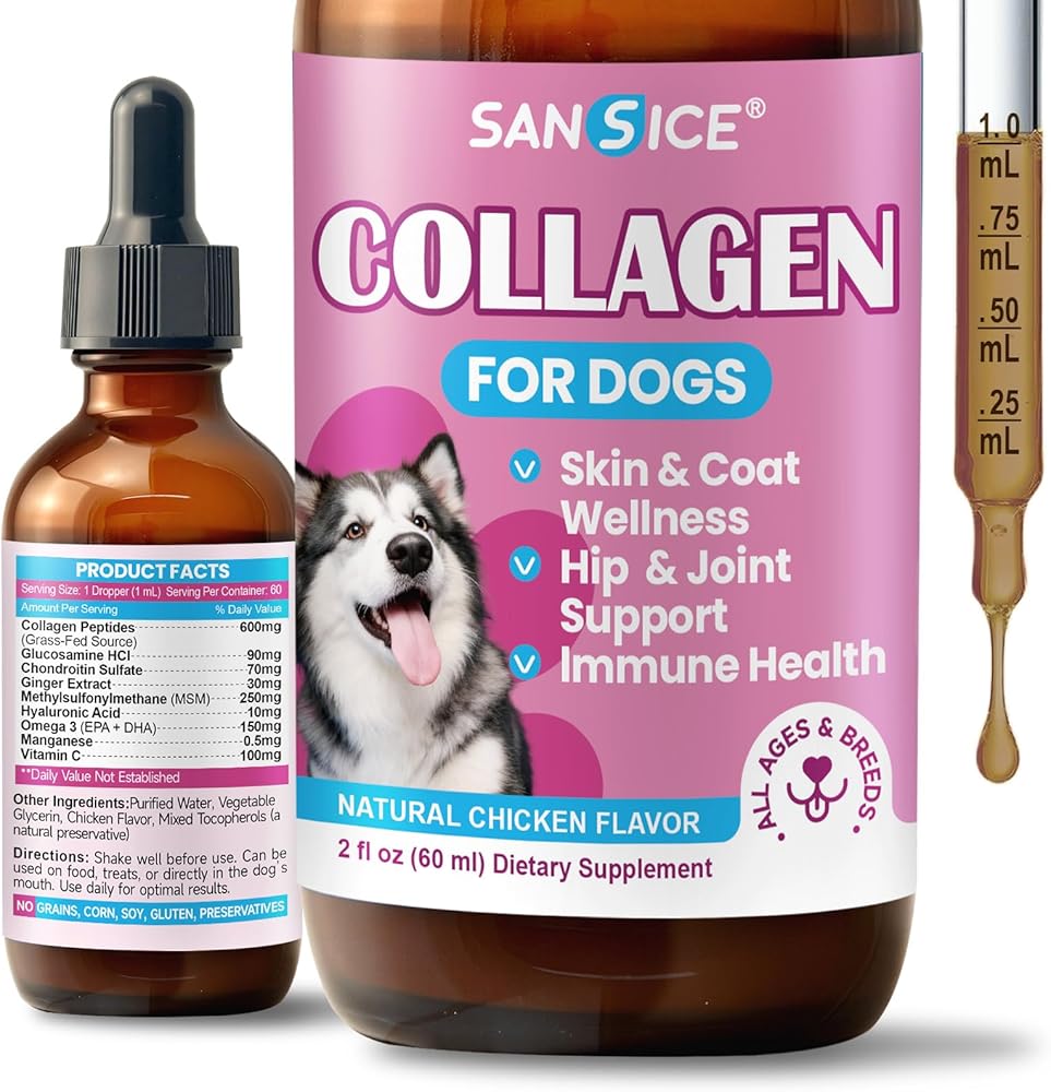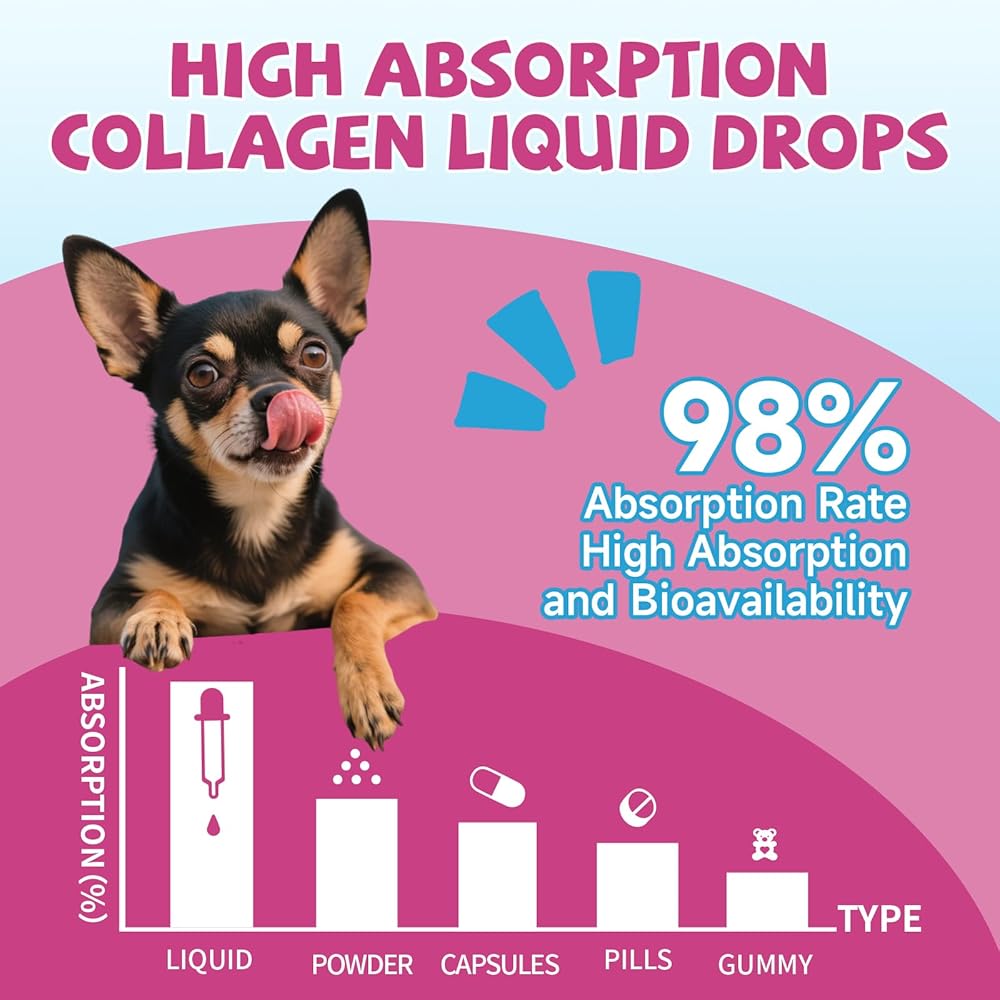 الكولاجين للكلاب: يساعد الكولاجين السائل للكلاب على تعزيز صحة الجلد والفراء. مكملات الكولاجين اليومية للكلاب تعمل على تحسين مرونة المفاصل وقوتها، وتعزز المناعة وتساعد على الهضم في سائل لذيذ المذاق. مصمم لجميع السلالات والأحجام، فهو يساعد على تعزيز معطف أكثر صحة ولمعانًا ويدعم المرونة والحركة