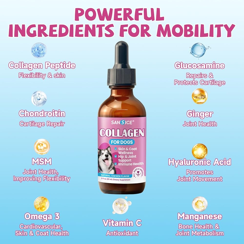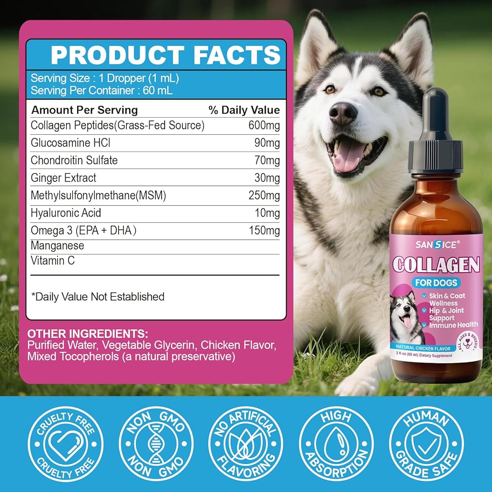 الكولاجين لصحة المفاصل للكلاب، قطرات كولاجين للكلاب التي تتغذى على العشب مع أوميغا 3، فيتامين C للبشرة والمعطف، مكمل الورك والمفاصل مع الجلوكوزامين، الكوندرويتين، حمض الهيالورونيك، العظام، المناعة -2 فلوريدا