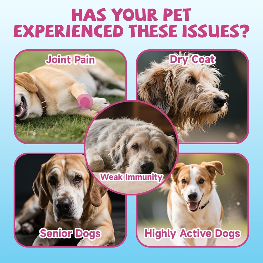 دعم المفاصل والحركة: مع الكولاجين العشبي وميثيل سلفونيل الميثان، والجلوكوزامين، والكوندرويتين، يعمل مكمل الورك والمفاصل الخاص بنا على تعزيز صحة المفاصل وحركتها، مما يضمن بقاء كلبك نشيطًا ورشيقًا طوال حياته. وهذا مفيد بشكل خاص للكلاب الأكبر سنًا، مما يساعدهم على البقاء نشيطًا ومرحة.