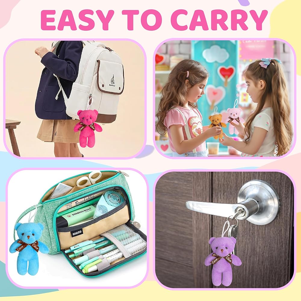 【آمنة ومريحة】مصنوعة من نسيج قطيفة فاخر، ألعاب الدب الصغيرة هذه ليست ساحرة فحسب ولكنها توفر أيضًا لمسة ناعمة، مما يمنح الأطفال شعورًا مطمئنًا بالأمان. توفر ألعاب الدببة الصغيرة الفاخرة تجربة دافئة ومريحة.