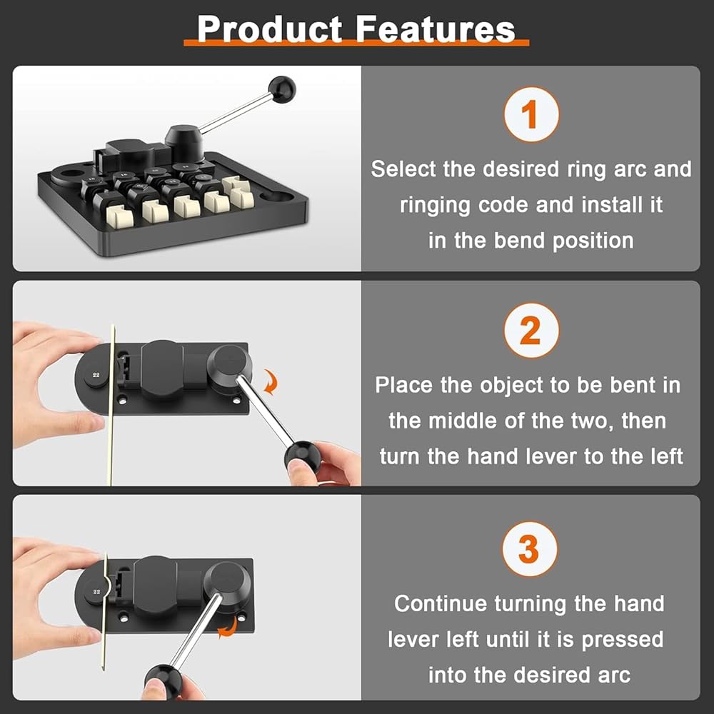 【نصيحة لاستخدام أداة ثني الحلقة】فيما يتعلق بصلابة المعدن، نوصي بصانع الحلقات هذا للمعادن الناعمة أو المعادن الخفيفة التي يقل سمكها عن 3 مم. يمكنك أيضًا استخدام هذه الآلة لصنع حلقات الملعقة