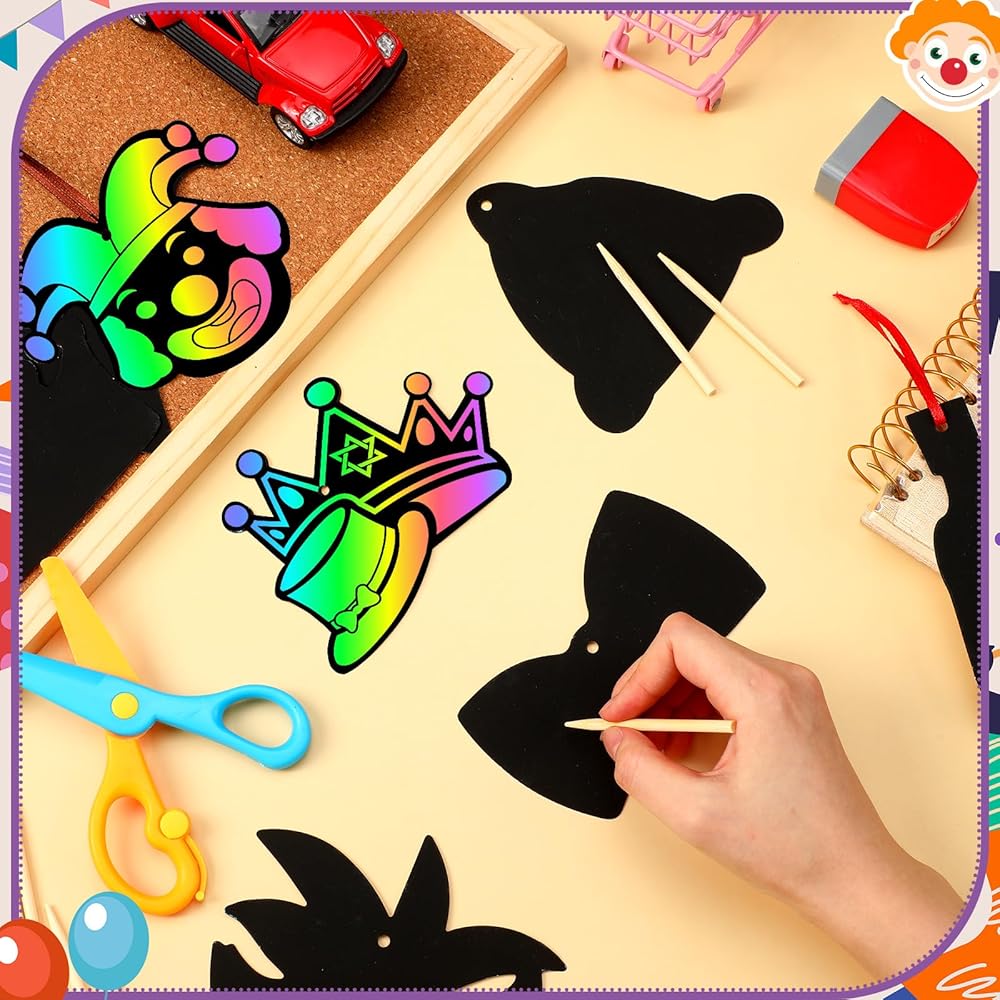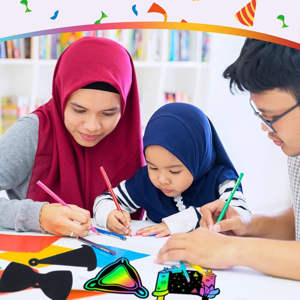 سهلة اللعب: فقط استخدم عصا خشبية للطلاء على السطح المطلي باللون الأسود غير اللامع؛ ارسم أنماطًا مختلفة وفقًا لتفضيلاتك؛ عند الانتهاء، يمكنك تمرير الشريط من خلال الفتحات المقطوعة مسبقًا على البطاقة لتزيين الهدايا أو عناصر الحفلات