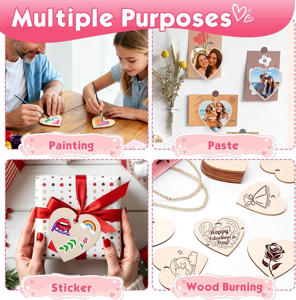 تُستخدم الفراغات الخشبية على نطاق واسع لتزيين المنازل، وصنع بطاقات الهدايا، والملصقات المكتوبة بخط اليد، وبطاقات المعايدة، وأرقام الطاولات، والأكواب، وبطاقات الرغبات، والشماعات، ودعائم الصور، وما إلى ذلك، الحرف اليدوية لعيد الحب مناسبة جدًا للمشروعات التي تصنعها بنفسك.