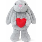Romantic Heart-Holding Bunny Design: This light gray plush bunny features long floppy ears and an adorable pink button nose, with its front paws gently cradling a bright red heart. Its sweet and tender appearance, full of love, makes it the perfect gift for Valentine's Day or any heartfelt occasion.