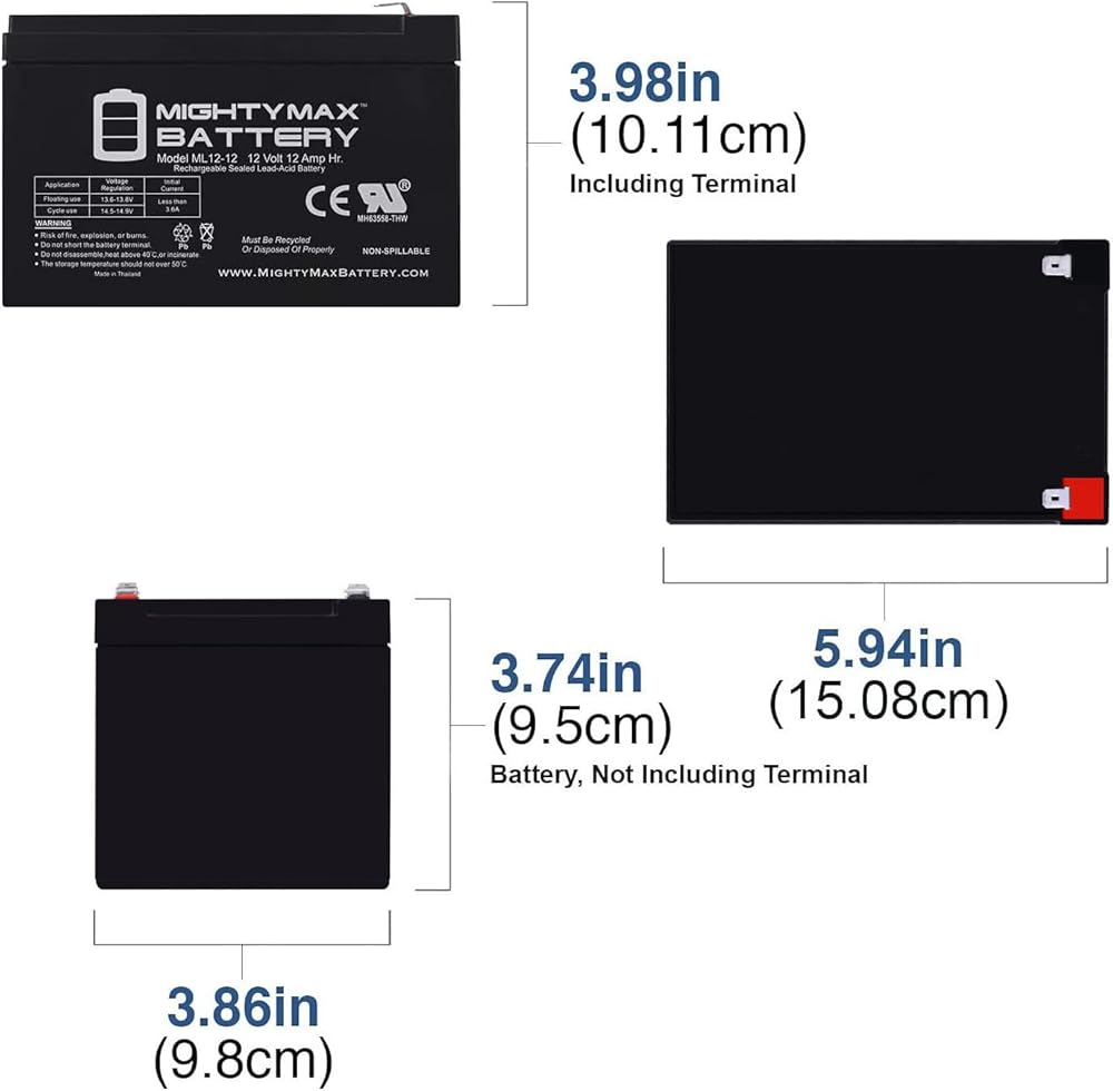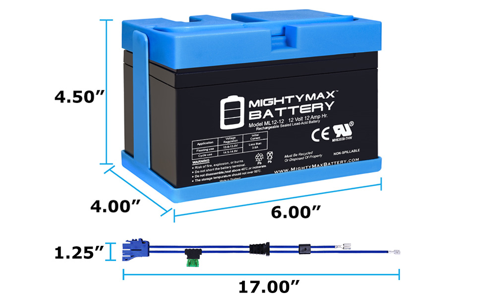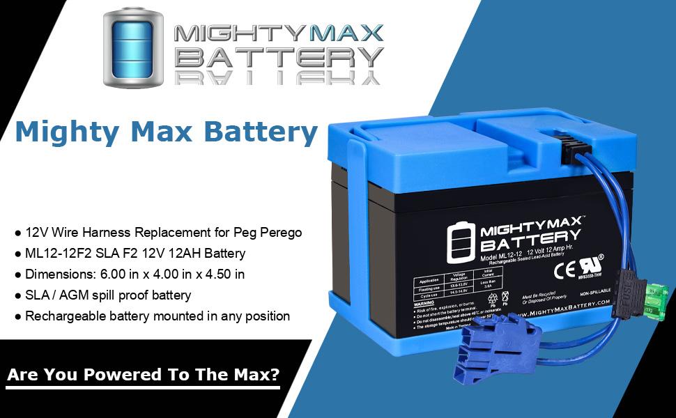 بطارية Mighty Max 12V 12Ah SLA واستبدال مجموعة الأسلاك الكاملة للعبة الركوب 12v Peg Perego
