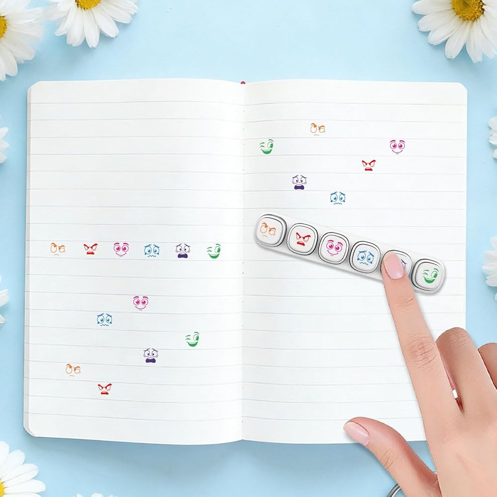 6 قطع من GLOBLELAND 6 أنماط مختلفة من طوابع التحبير الذاتي لتصنيف التعبيرات البلاستيكية مجموعة طوابع صغيرة للتعبير عن الرسم اليومي والحرف الفنية وحفلات أعياد الميلاد وجوائز الكرنفال