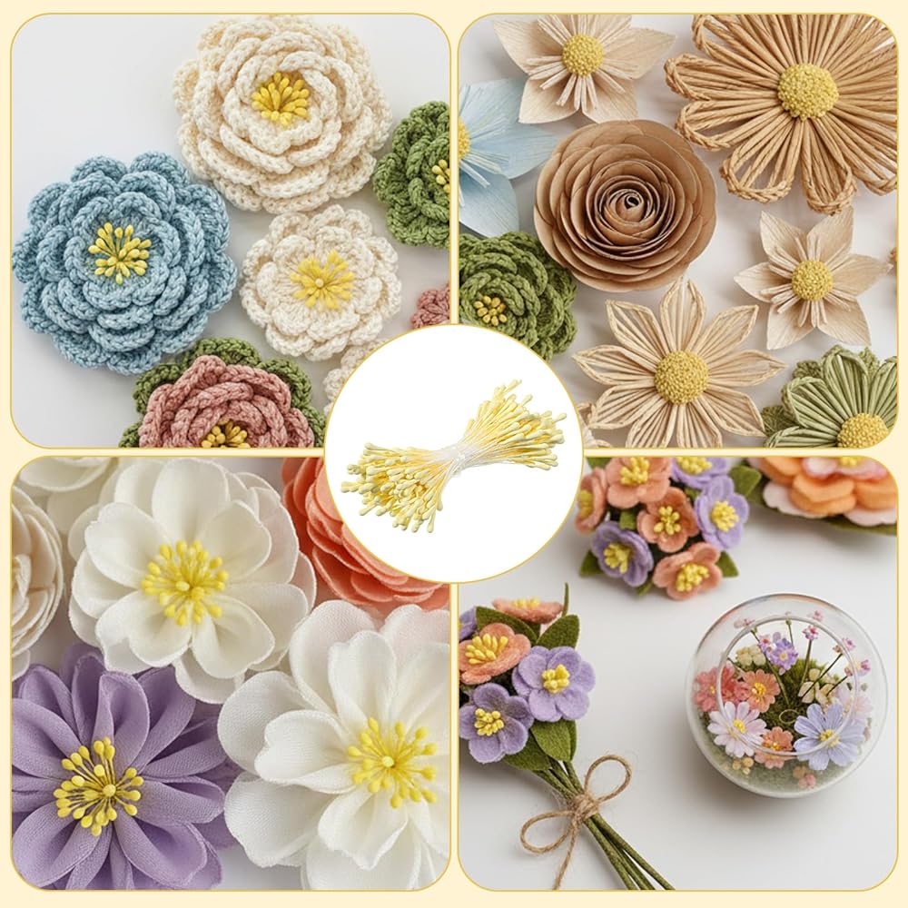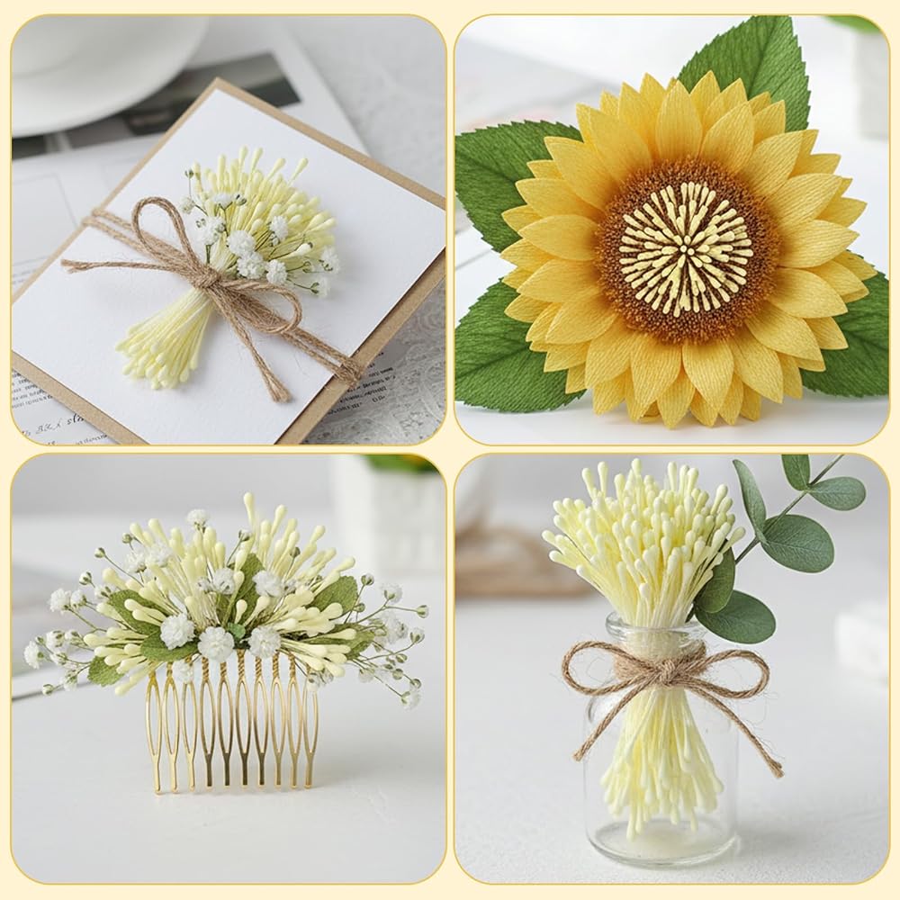 【Premium Material】These stamens for flower making are made from a combination of plaster and cotton thread, making them resistant to fading and damage, ensuring your handmade flowers stay vibrant for a long time