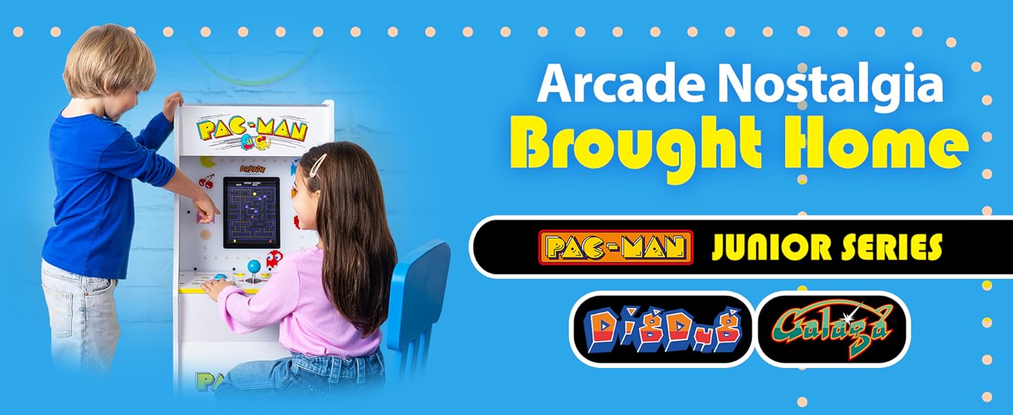 أركيد كلاسيكس باك مان جونيور. لعبة SERIES ARCADE: ثلاث ألعاب أركيد أسطورية - Pac-Man وGalaga وDig Dug - في خزانة واحدة صغيرة الحجم مليئة بالمرح القديم!
