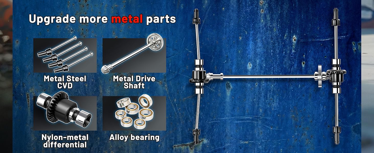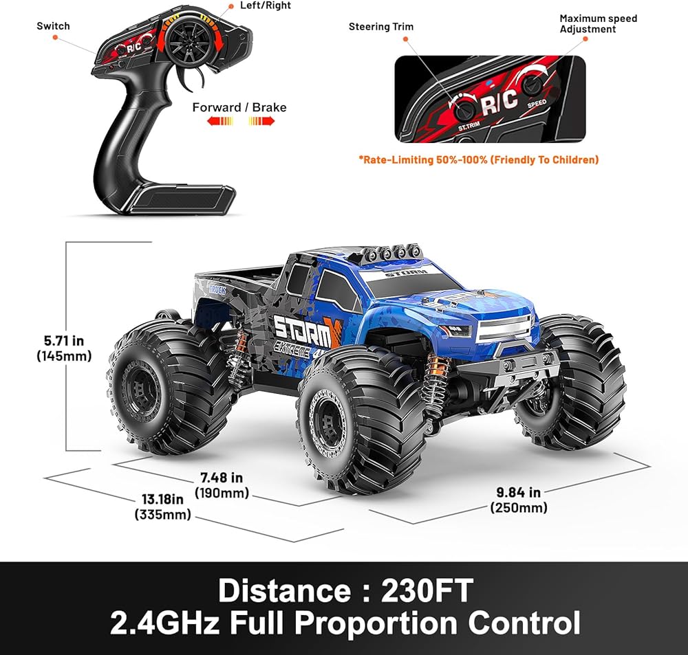 أداء شاحنة الوحش للطرق الوعرة 4WD تتميز هذه الشاحنة الوحشية للطرق الوعرة ذات الدفع الرباعي بصدمات معدنية قابلة للتعديل، ومؤازرة مقاومة للماء بخمسة أسلاك بعزم دوران عالي 1.5 كجم، وزاوية توجيه 30 درجة لتحسين أداء الدوران. يشتمل نظام الدفع على كوب تفاضلي من السبائك، وعمود قيادة مركزي من السبائك، ومحامل كروية كاملة، ومصد معزز، ومصابيح أمامية LED، وهيكل مقاوم للماء IPX4. يسمح هيكلها المتين وتصميم التعليق بالقيادة بثقة على الأوساخ والرمال والعشب والممرات الصخرية والأرصفة.