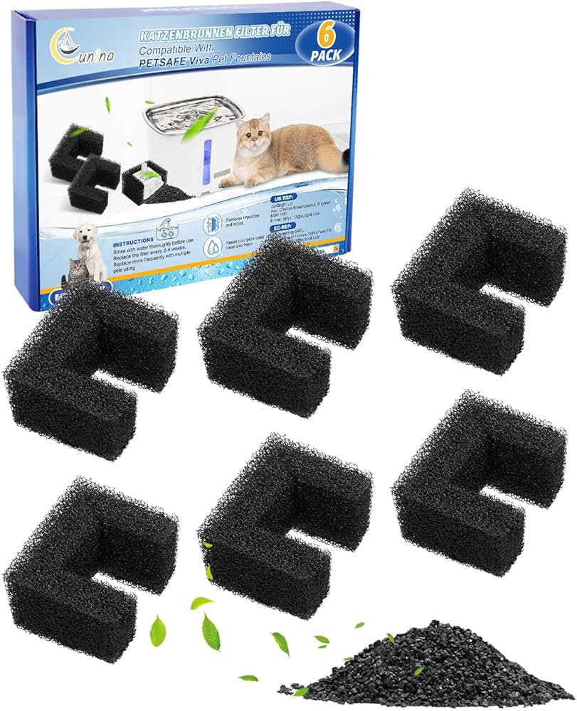 استبدال مرشحات الرغوة المتوافقة مع نافورة المياه PetSafe Viva Cat 64oz و140oz، استبدال فلتر نافورة شرب الحيوانات الأليفة، فلتر إسفنجي للقطط والكلاب 6 عبوات