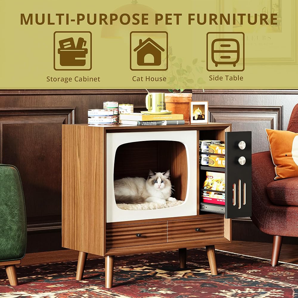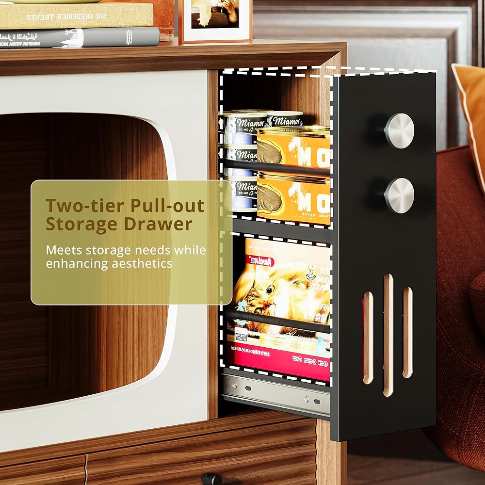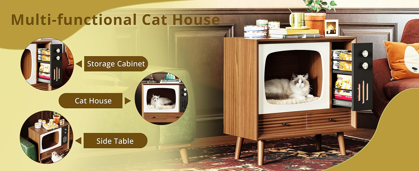 مساحة تخزين واسعة: تأتي مع درجين وحجرة تخزين جانبية، تلبي احتياجاتك بسهولة للتخزين المقسم، ويمكنها حمل طعام القطط وأجهزة التحكم عن بعد وغيرها من الأشياء الصغيرة.