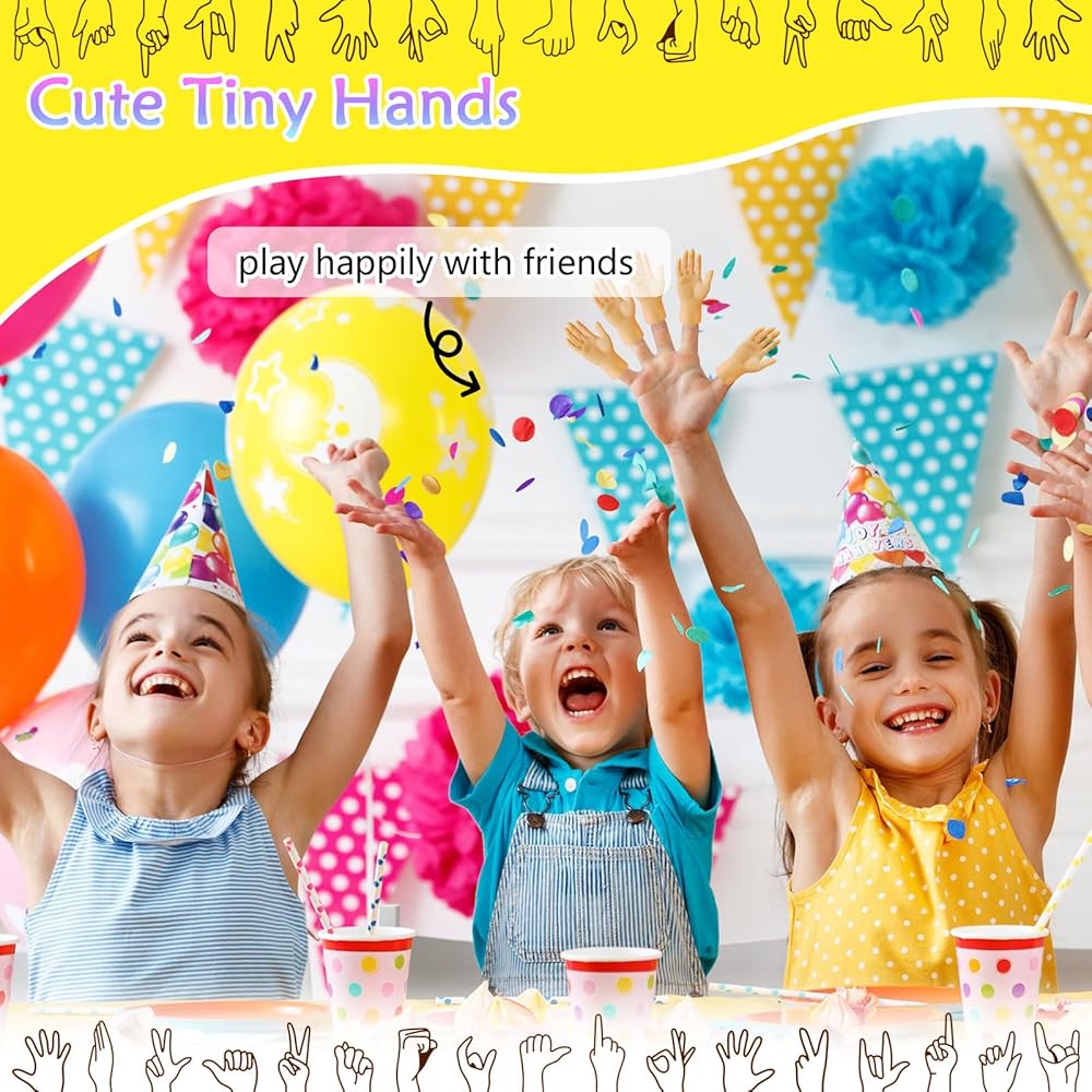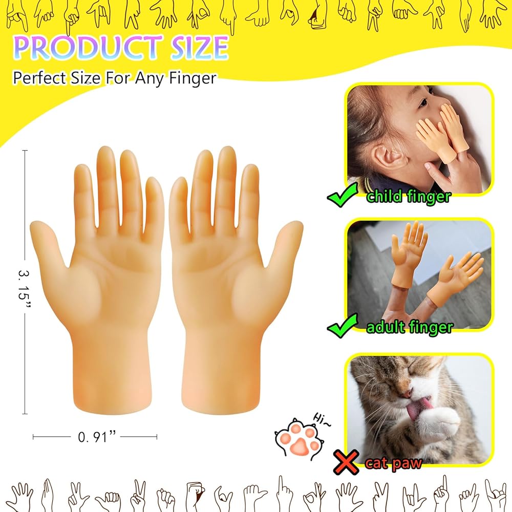 أيدي صغيرة للترفيه - هذه الأيدي الصغيرة المضحكة لدائرة الأصابع ذات حجم عالمي، ومناسبة للبالغين والأطفال. كل ما عليك فعله هو وضع أيدي صغيرة للأصابع على أصابعك والبدء في قضاء وقت عائلي ممتع مع أيدي الأصابع الصغيرة هذه لأيدي أصابعك.