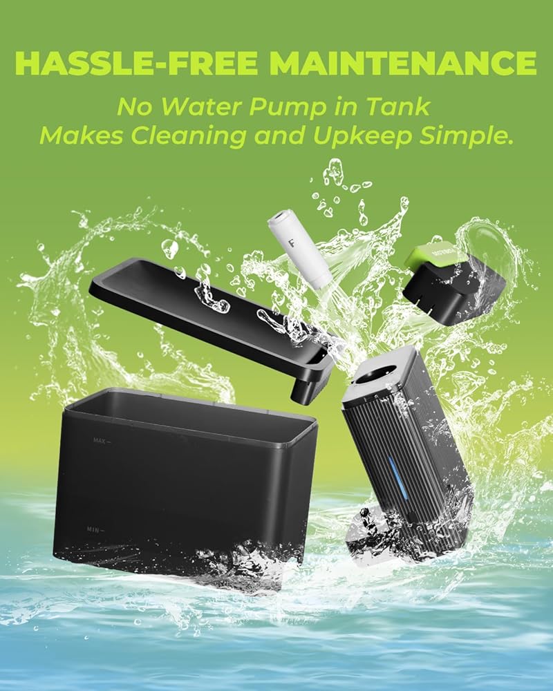 سهل التركيب والتنظيف: تصميم خزان المياه المنفصل يلغي الحاجة إلى تنظيف مضخة المياه، ويضمن القاعدة الإلكترونية المقاومة للماء IPX-6 السلامة