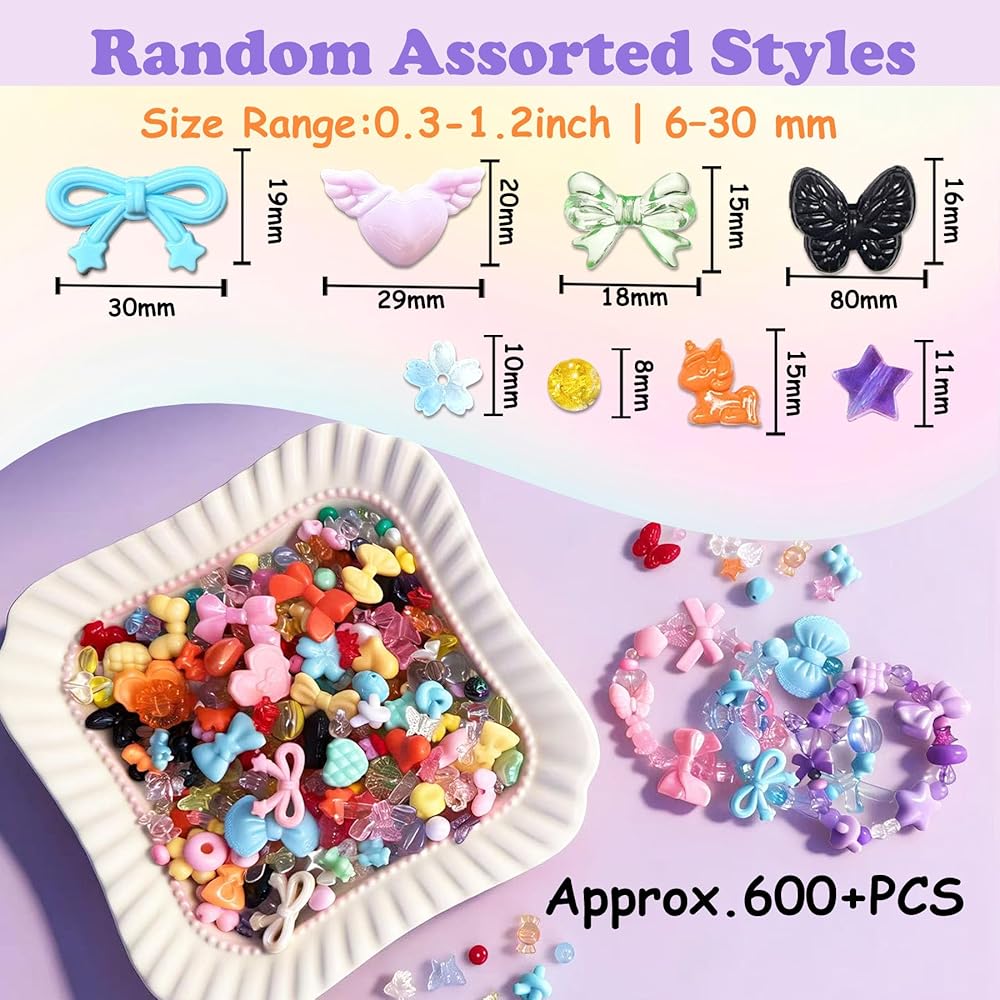 • Cute Assorted Shapes for DIY Craft: These beads randomly assorted shapes, including flower, bow, butterfly and candys, offering a fun variety for your DIY projects. The variety of shapes gives you endless options for creative jewelry making