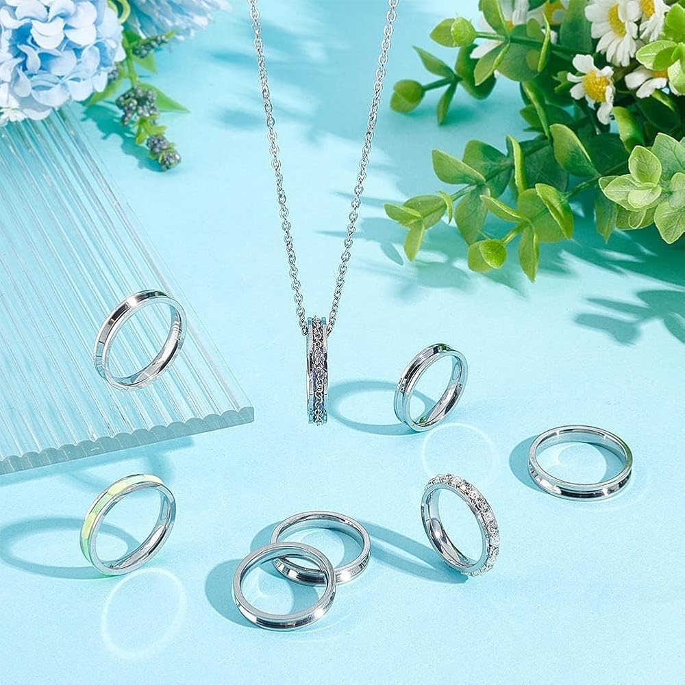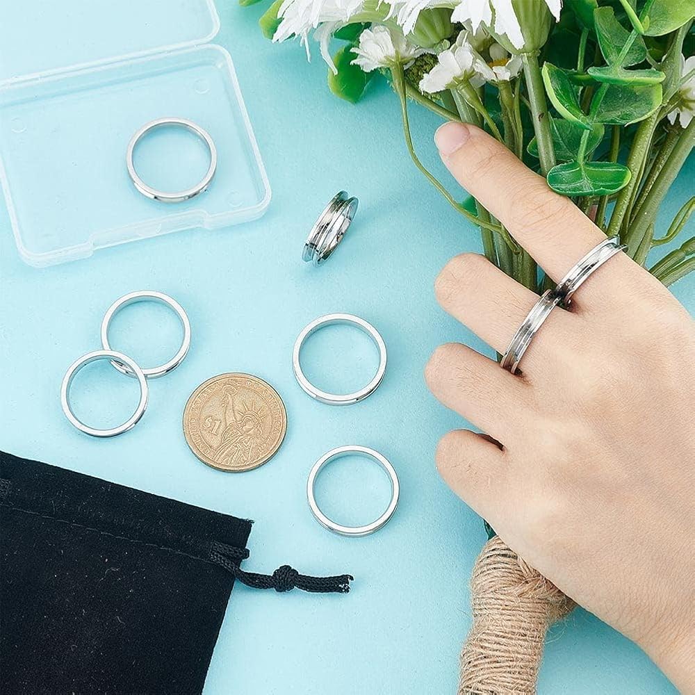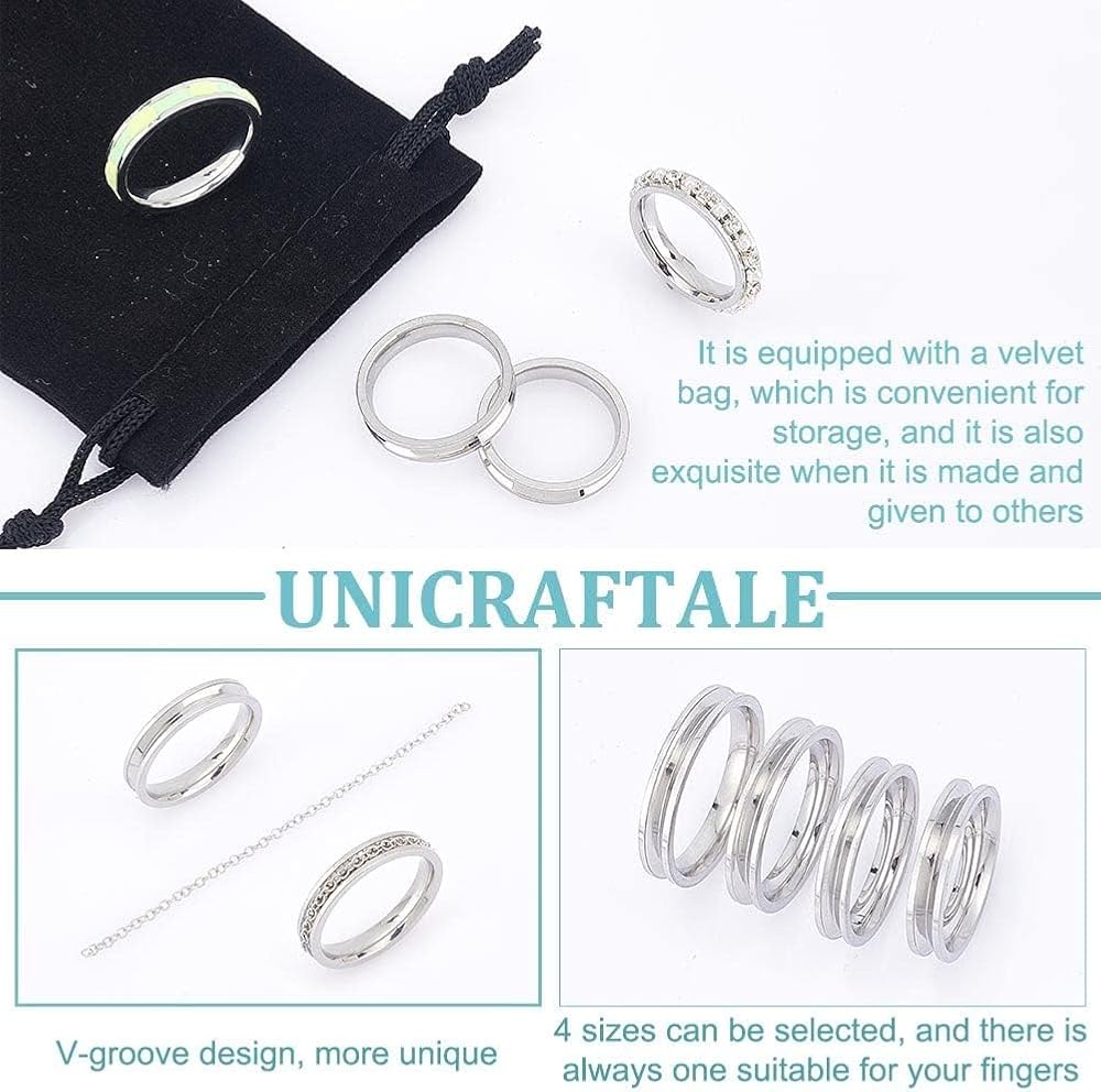 تشمل العبوة: تحتوي على 4 أحجام من إعداد الحلقات المخددة المصنوعة من الفولاذ المقاوم للصدأ، لون الفولاذ المقاوم للصدأ كلاسيكي ومتعدد الاستخدامات، ومناسب لصناعة الخواتم وتصميم حلقات بأنماط مختلفة.