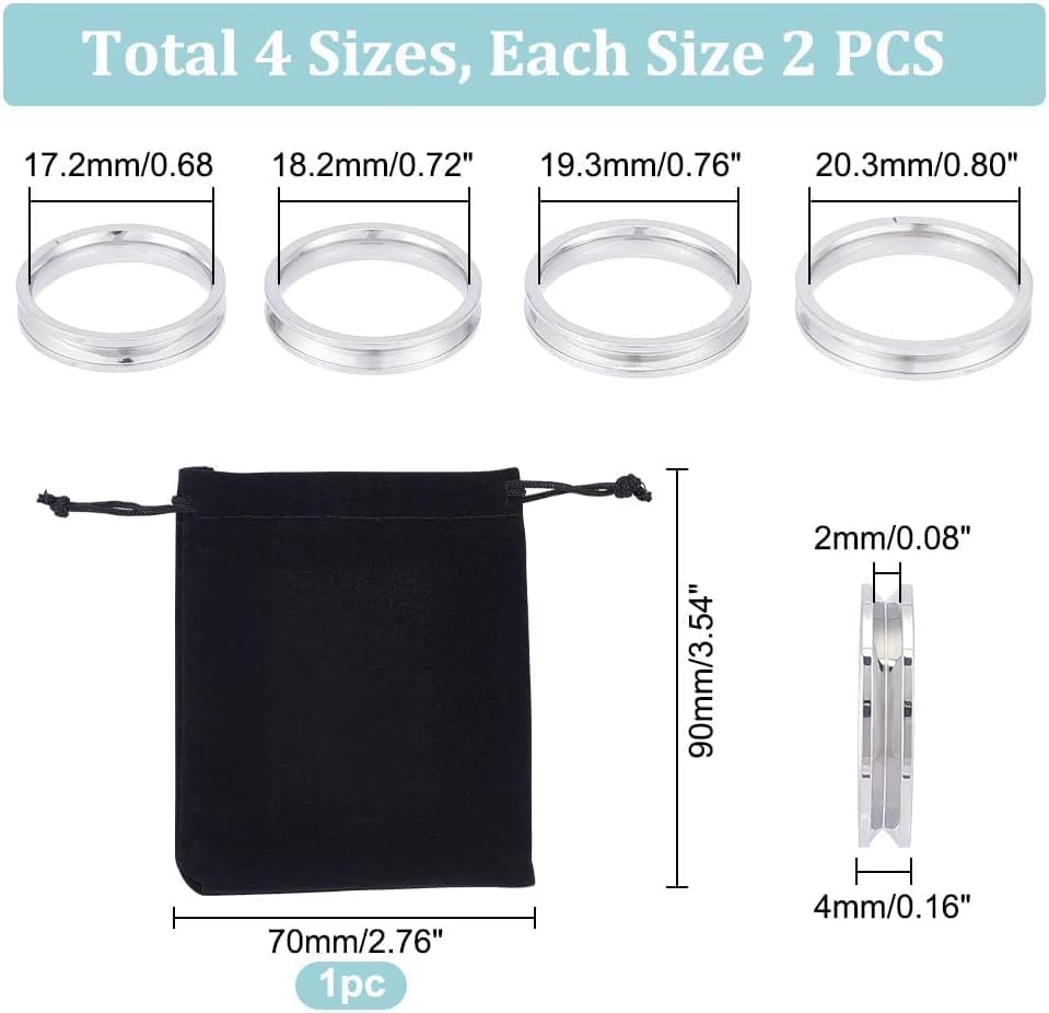 4 مقاسات: مقاسات الخاتم هي 17.2/18.2/19.3/20.3 مم القطر الداخلي، عرض 4 مم، أخدود الحلقة: 2 مم، 6 من كل مقاس، مناسبة لمعظم الأشخاص لارتدائها.