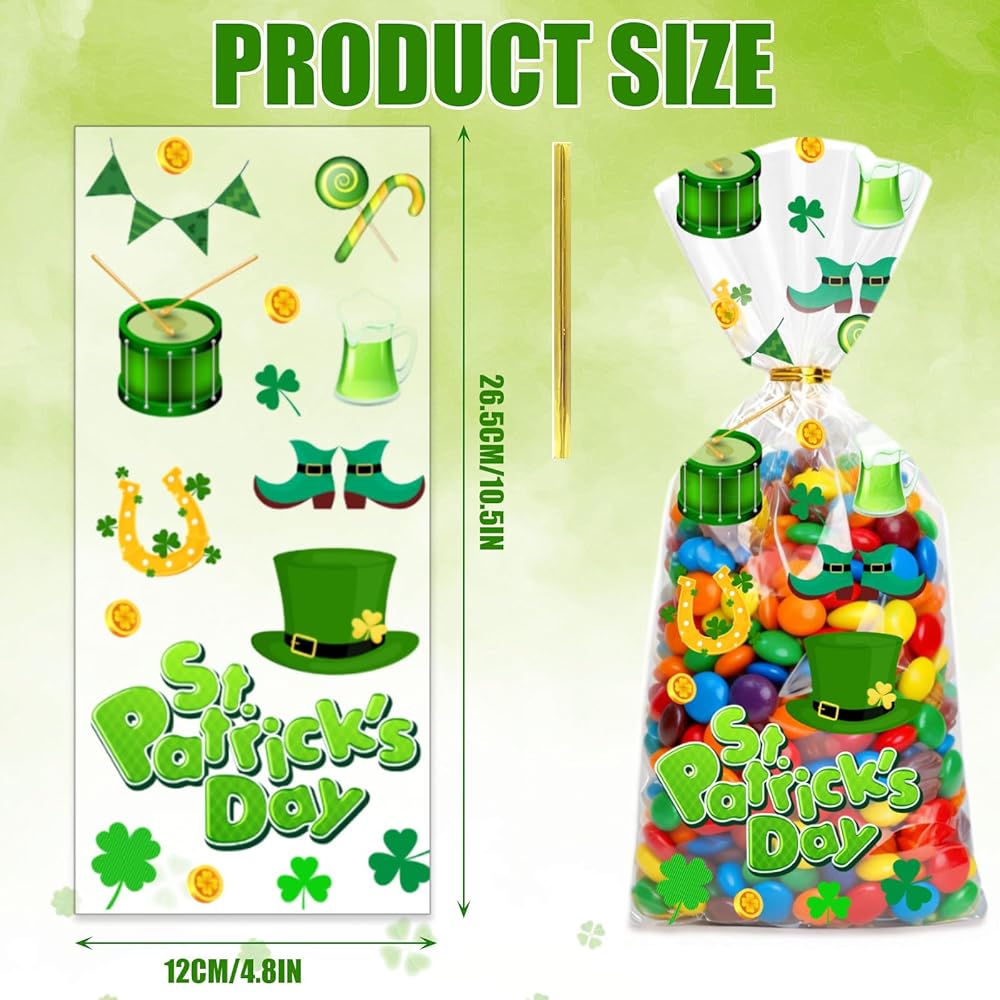 • 🍀 Quality Guaranteed. Made with premium materials to meet your quality standards. If you have any questions after receiving your Saint Patricks Day cellophane treat bag, please contact us promptly. We will do our best to resolve your questions.