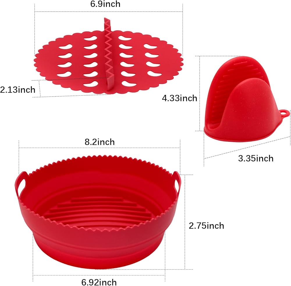 【2 Pack Air Fryer Silicone Liner】 Essential air fryer accessories with mitts and seperator pad,8 inches reusable air fryer liners,our round silicone air fryer liners is thicker,you do not need to worry about burning during use,fits 3-5 QT air fryers,please confirm the capacity before purchase.