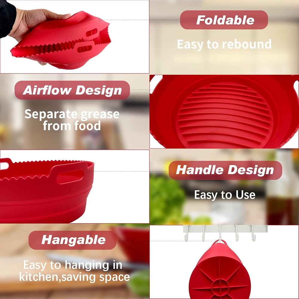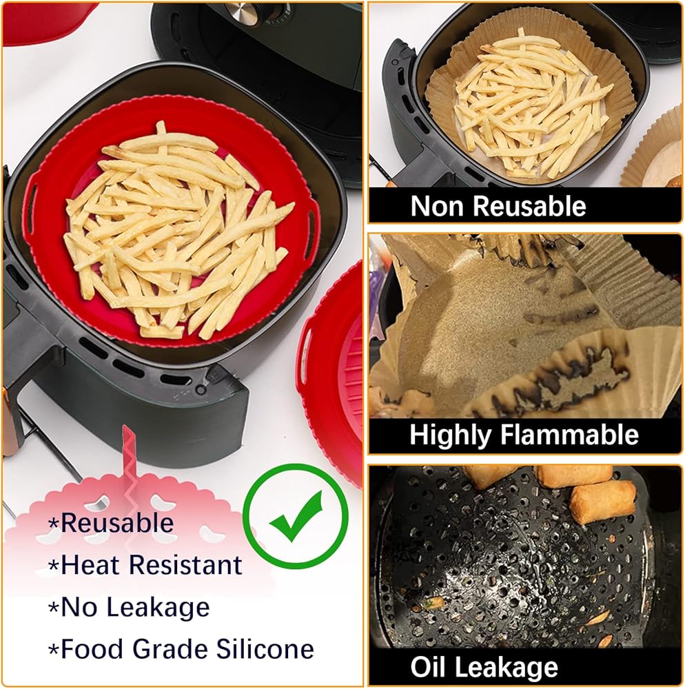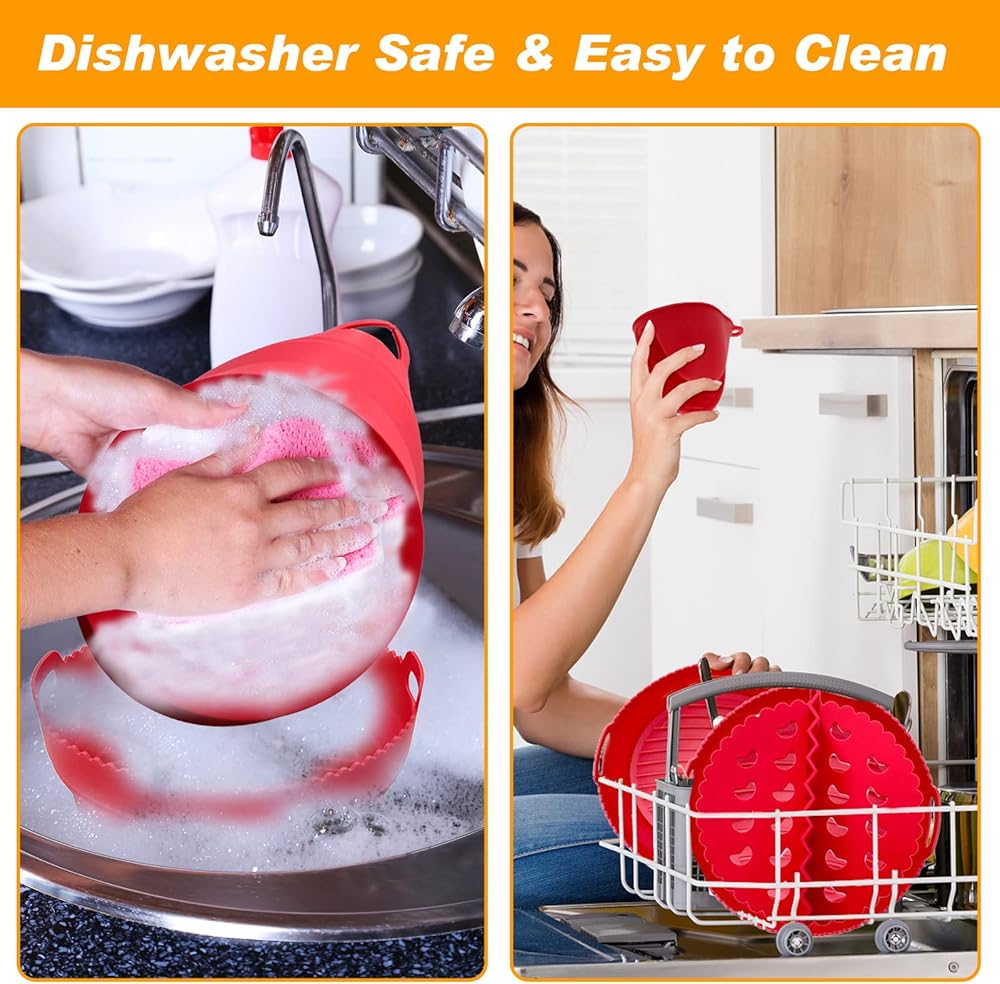 【Food Grade Silicone&Heat-Resistant】The silicone pot is made of durable food-grade silicone with built-in handles,safe,non-stick,non-toxic,BPA free,highly heat resistant material that withstands up to 470℉,making the liners perfect for air frying, steaming, and oven baking.