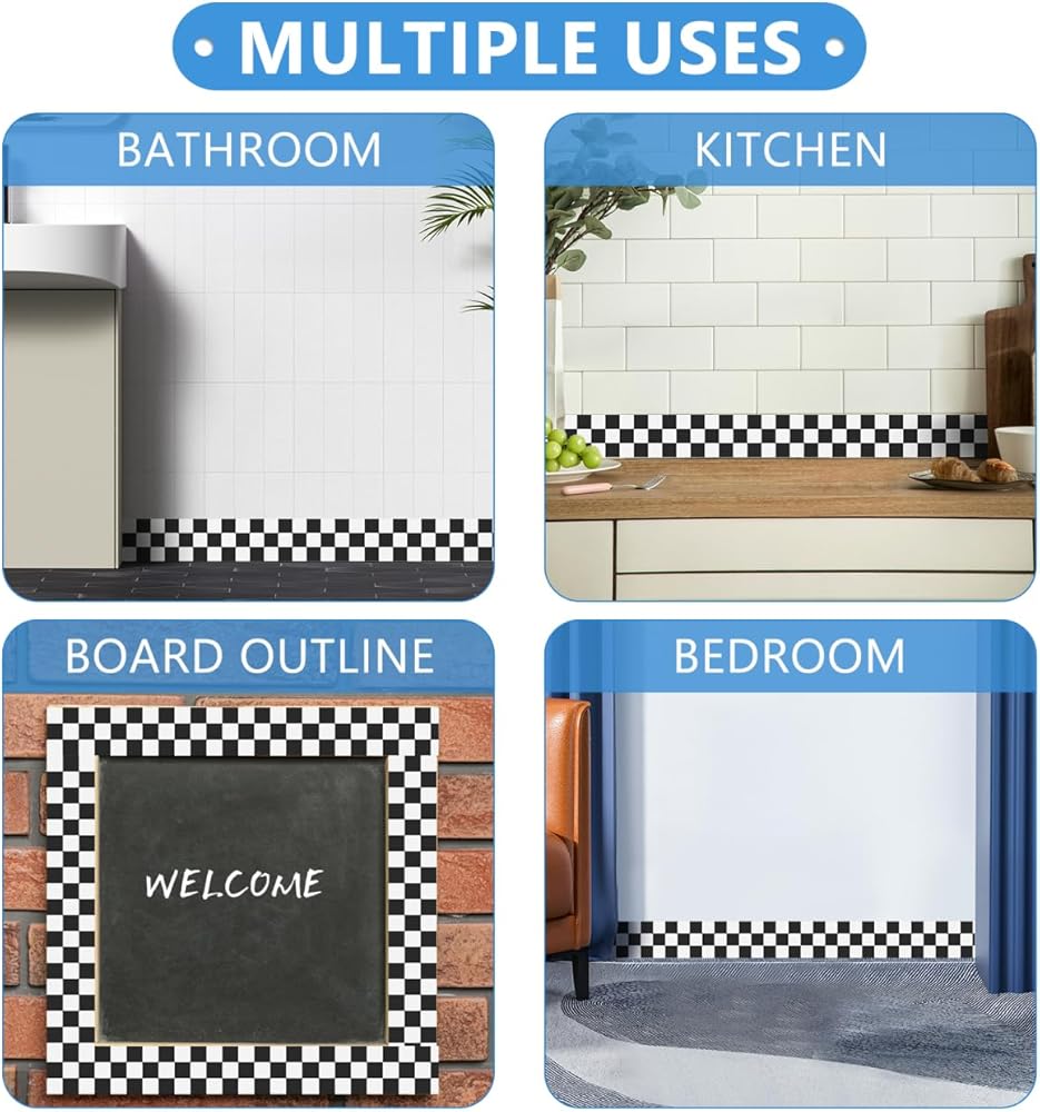 تصميم كلاسيكي: ملصق بنمط مربعات يضيف الأناقة والأناقة إلى أي مساحة، ويكمل مجموعة من أنماط الديكور، وزخرفة الحدود للوحة الإعلانات، وتزيين الحدود