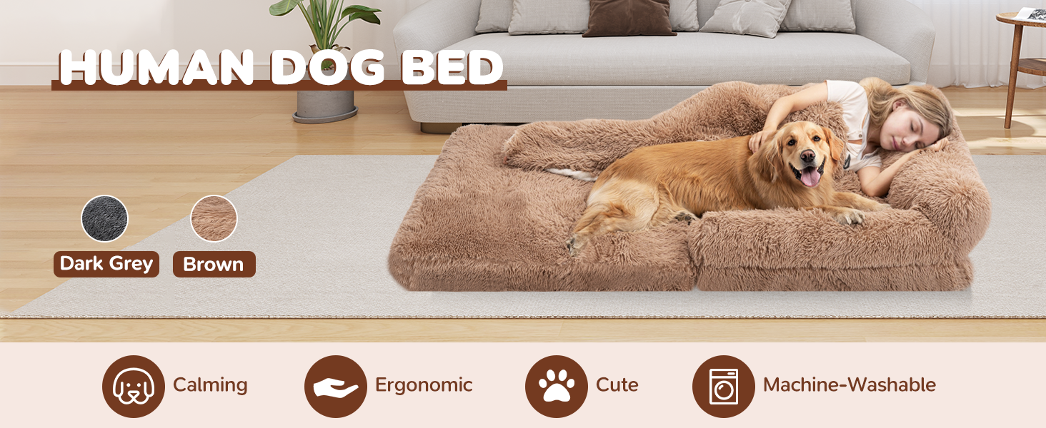 سرير الكلاب البشري الرقيق الخاص بنا للبالغين هو مصنوعة بدقة من أجود أنواع القطيفة من الدرجة الأولى، مما يوفر إحساسًا سميكًا وناعمًا للغاية، كما لو كنت تطفو على سحابة. وهنا لمسة إضافية من البهجة بطانية قطيفة مزدوجة الجوانب (باستثناء نسخة الأطفال). استمتعوا معًا في تلك الليالي الباردة، واخلقوا ذكريات ستظل عزيزة مدى الحياة، كل ذلك بينما تنعمون براحة لا مثيل لها.