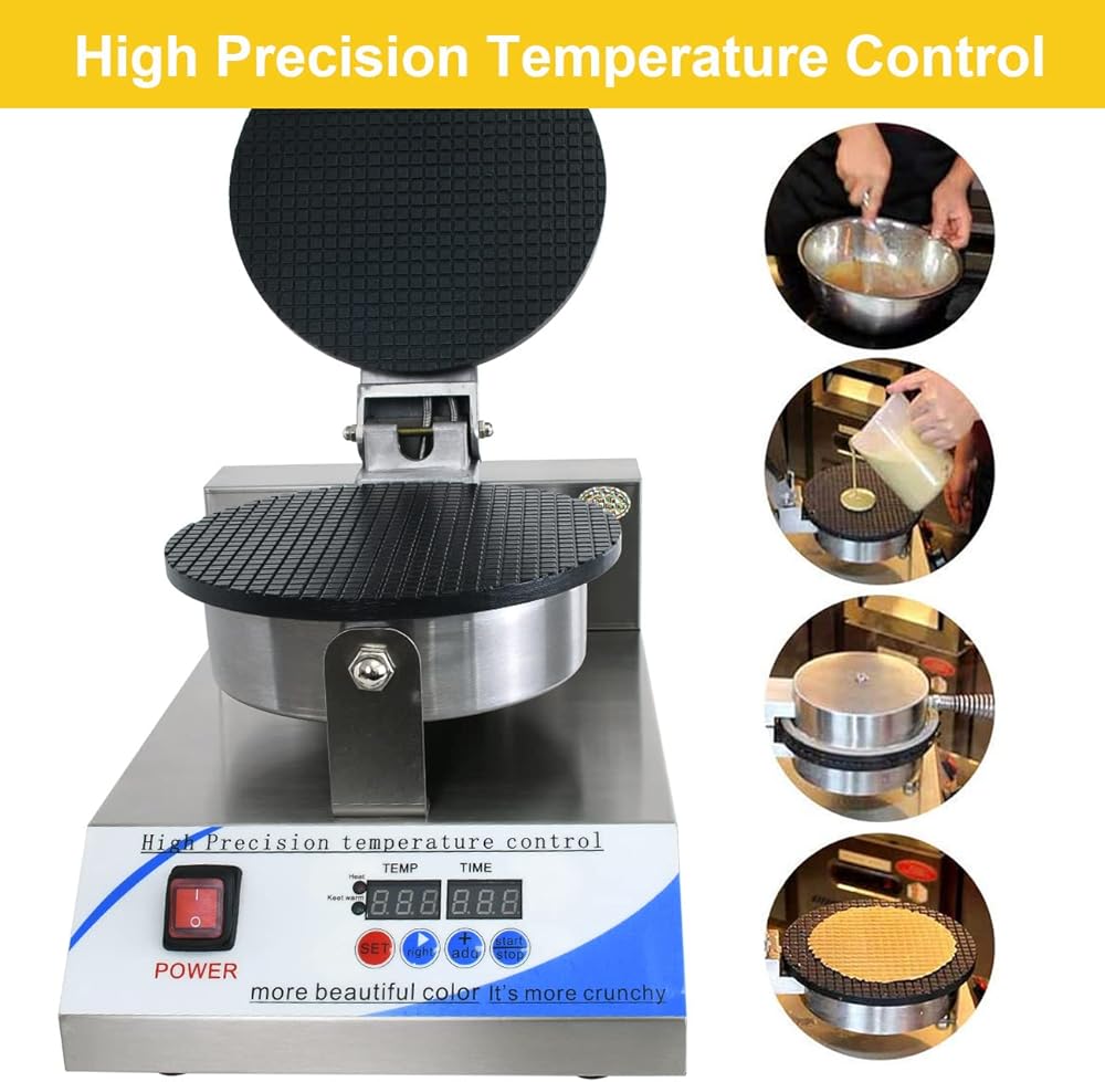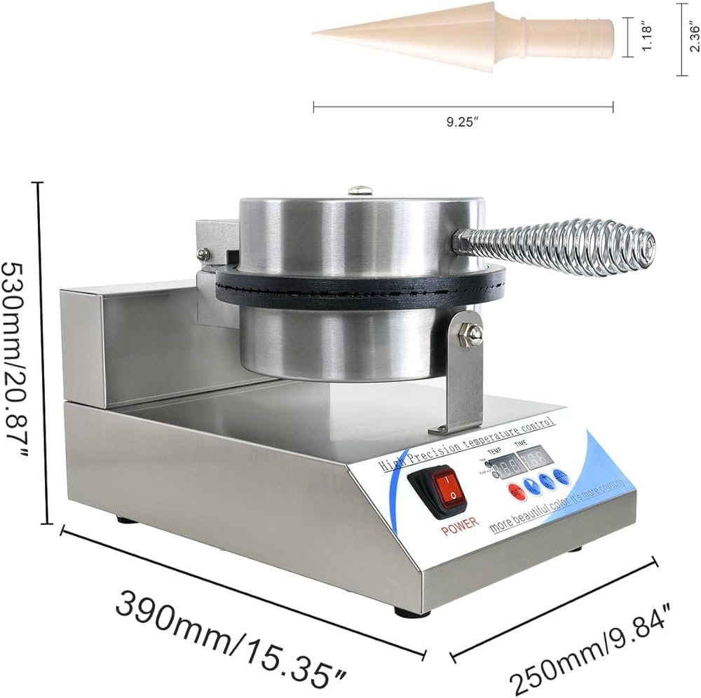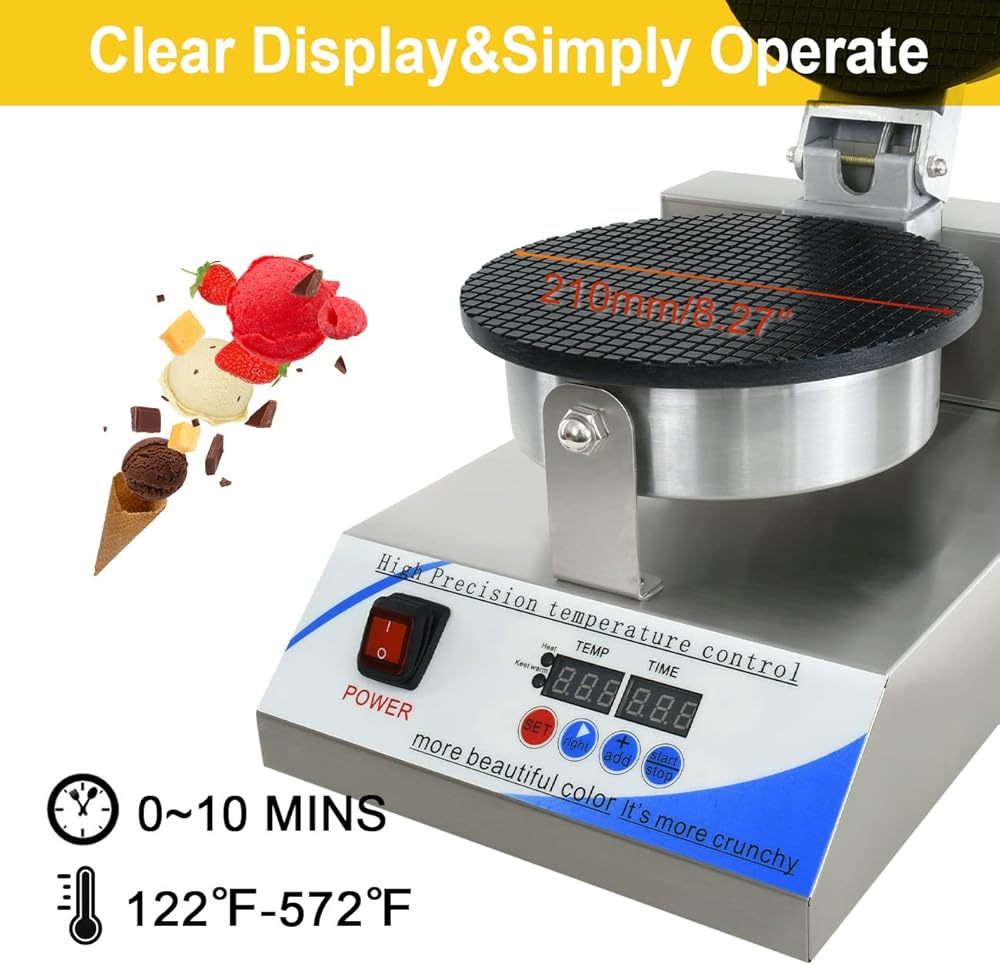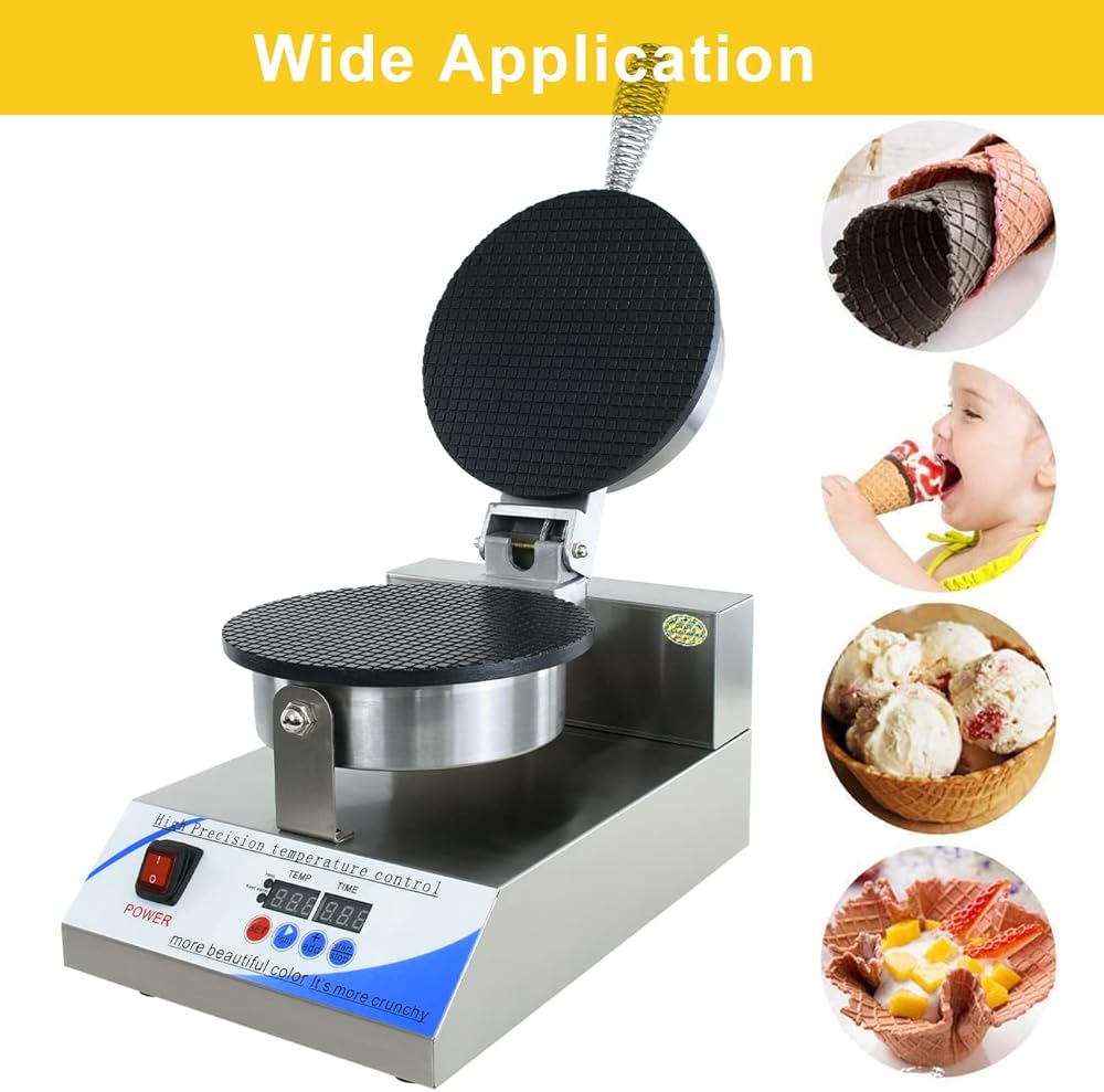 صانع مخروط الآيس كريم الكهربائي من NJTFHU، صانع مخروط الوافل التجاري 110 فولت للمنزل، مع التحكم في درجة الحرارة والوقت LED، طلاء غير لاصق 1300 وات 8.3 بوصة، من الفولاذ المقاوم للصدأ للمطبخ والمخابز وبار الوجبات الخفيفة