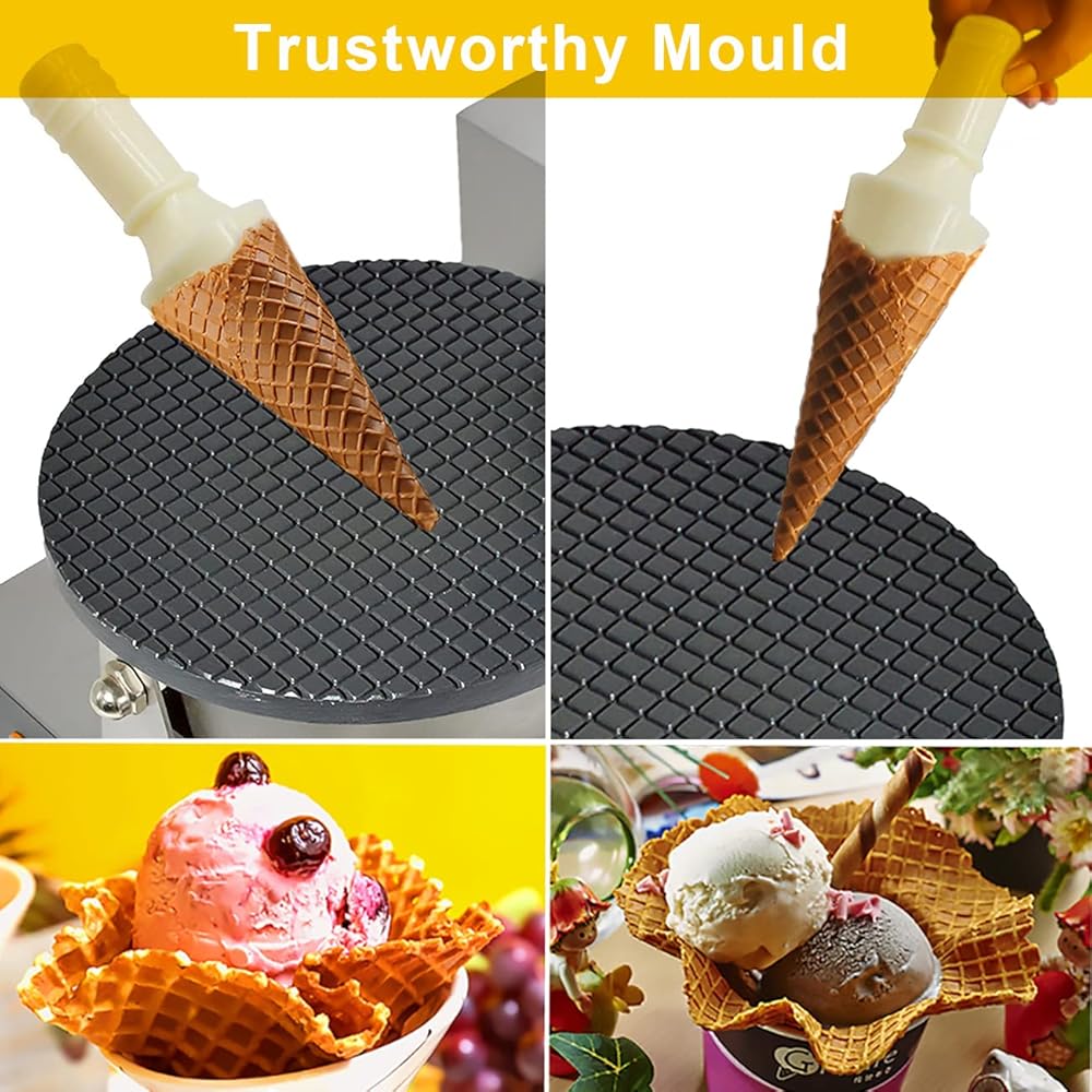 ☛【تطبيق وخدمة واسعة】--يمكن استخدام صانع مخروط الآيس كريم NJTFHU لصنع مخروط الآيس كريم ومخروط الوافل والفطائر والمزيد. نحن واثقون من أن جودة منتجنا مؤهلة بنسبة 100%. سنقدم لك دائمًا أفضل خدمة.