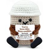كوب قهوة مصنوع يدويًا: مصنوع يدويًا بعناية باستخدام خيوط ناعمة وممتازة، ويتميز كل كوب قهوة بخياطة بنية اللون، وطبقة علوية من الكريمة المخفوقة، وتفاصيل وجه مبهجة - مما يجعل كل قطعة عملاً فنيًا فريدًا.