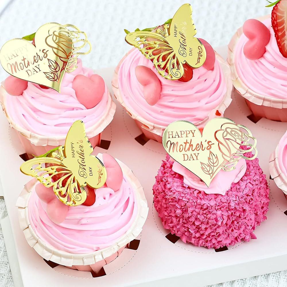 VERSATILE DECORATION: Ideal for cupcakes, cakes, desserts, floral arrangements, and party displays, adding a sophisticated touch to your Mother's Day celebration