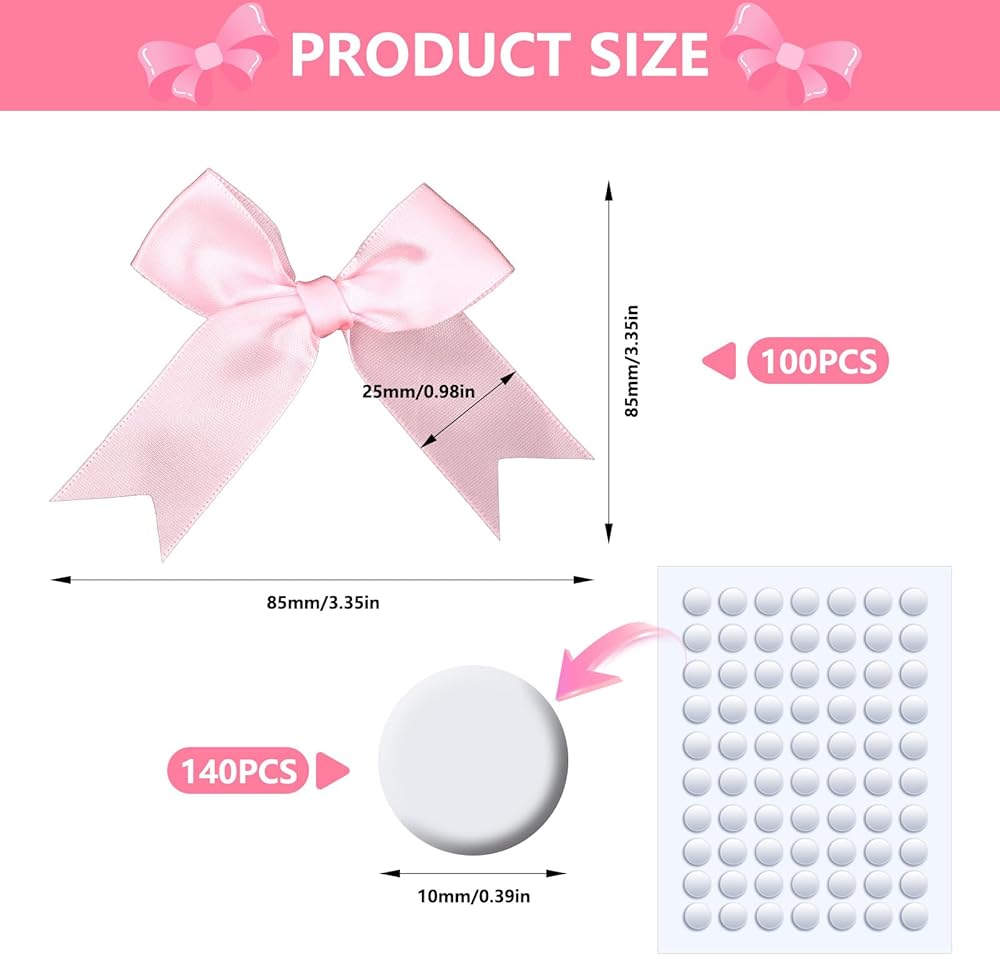 Quantity: 100pcs bows + 1 pcs adhesive tape