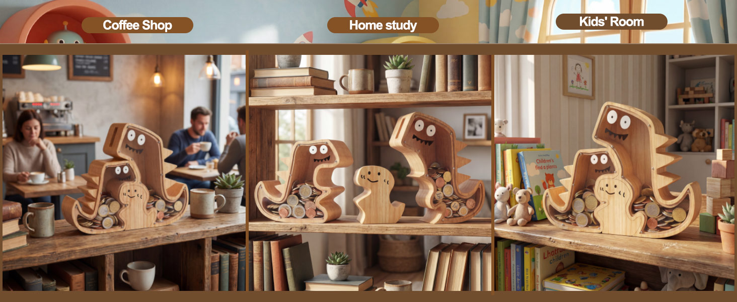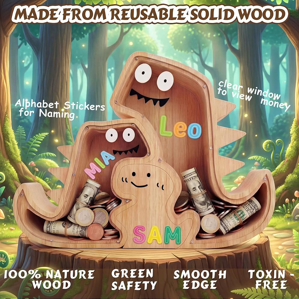 حصالة خشبية مطورة لعام 2026: مجموعة حصالة على شكل ديناصور خشبية للأطفال من Bavbiiy تتضمن ثلاث قطع. تم تصميمه بطابع عائلي دافئ، وهو بنك الخنزير الخشبي المثالي للأطفال لتشجيع الادخار من خلال اللعب. بالمقارنة مع المنتجات المماثلة الموجودة في السوق، يتميز بنك الخنزير الخشبي الخاص بنا بحجم أكبر: 11.2 بوصة (طول) × 8.68 بوصة (عرض) × 1.75 بوصة (ارتفاع) ومقصورات تخزين مزدوجة.