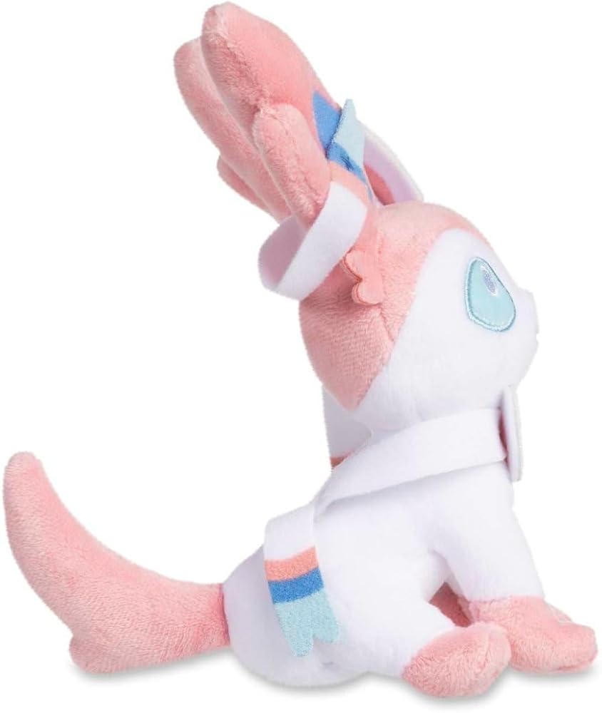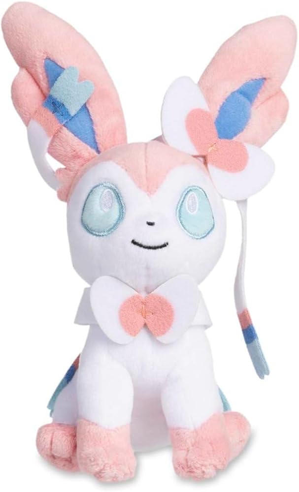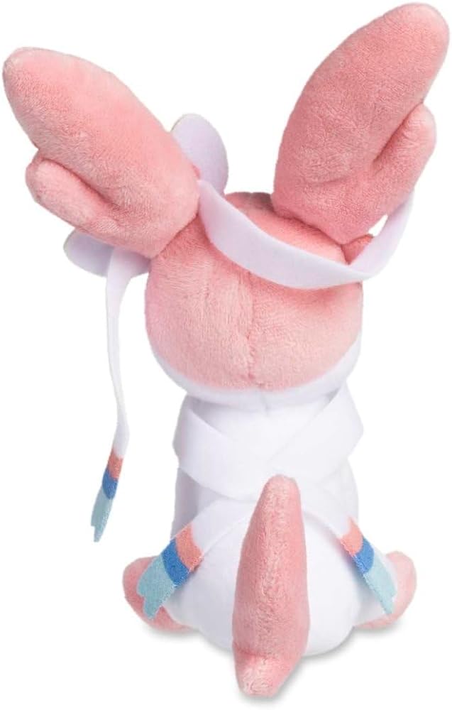 The Sylveon Sitting Cuties Plush is weighted with microbeads, so it sits up when you put it on a flat surface. This palm-sized plush is a fun, charming way to show off a favorite Fairy-type Pokémon originally discovered in Kalos!