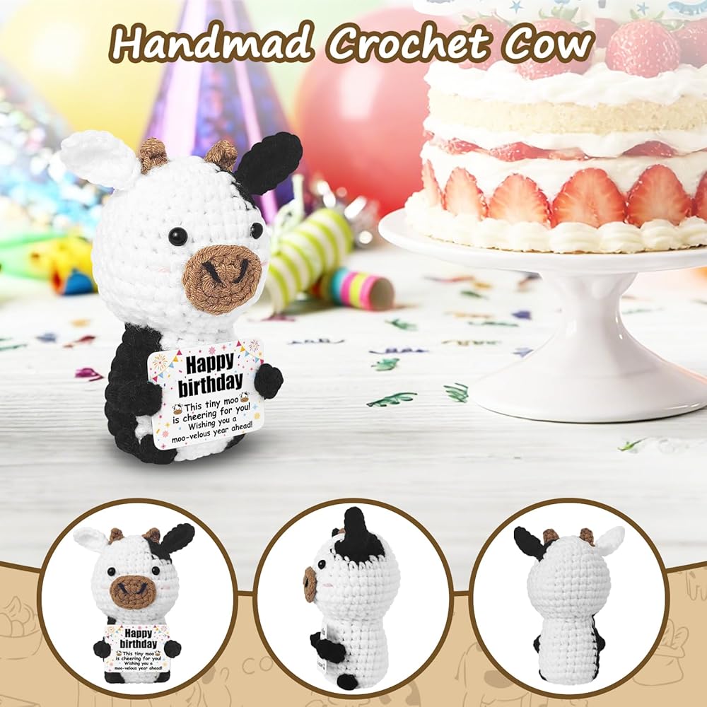 Handmade Crochet Cows Gifts for Son Daughter: Who says gratitude has to be boring? This funny little cow delivers your heartfelt thanks, with a side of charm and a motivational card to keep spirits high