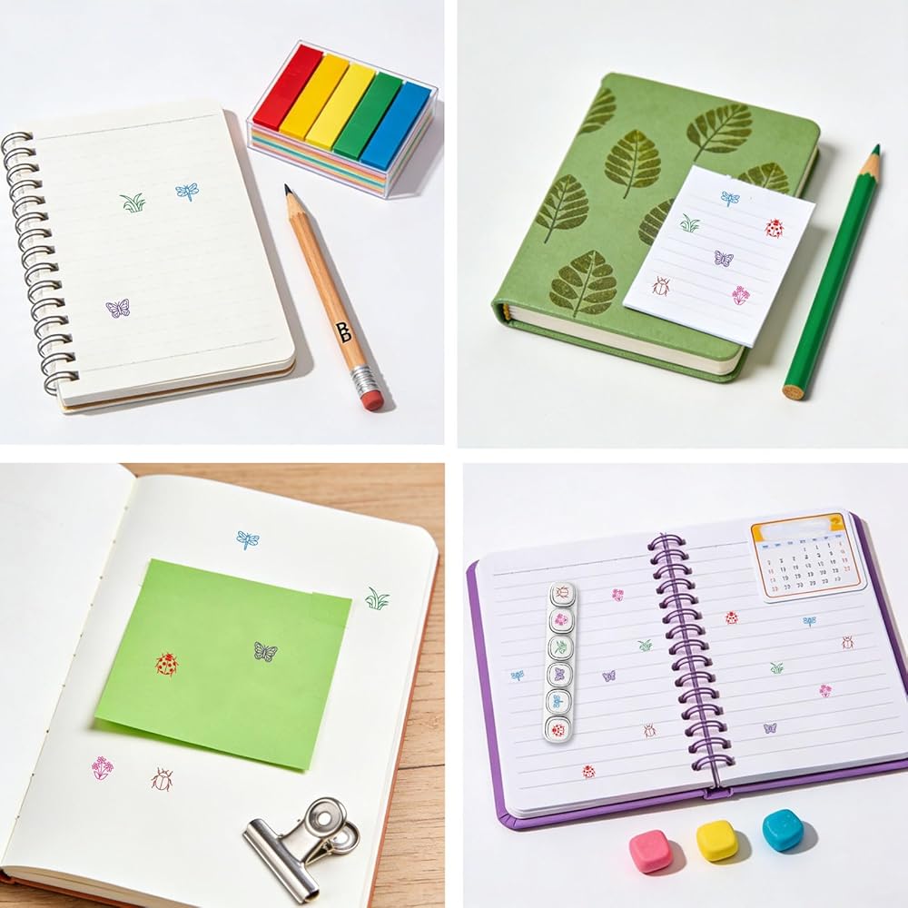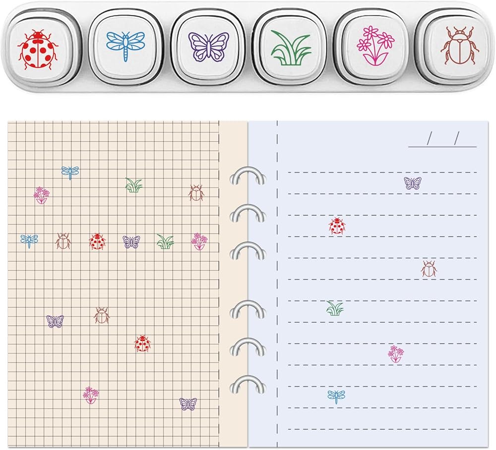6 قطع من GLOBLELAND 6 أنماط من الحشرات ذاتية التحبير لتصنيف الفراشة خنفساء البلاستيك مجموعة طوابع صغيرة لنباتات الزهور العشبية لرسم اليوميات والحرف الفنية للحفلات لصالح جوائز الكرنفال