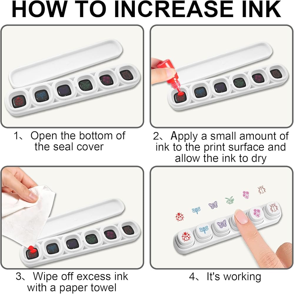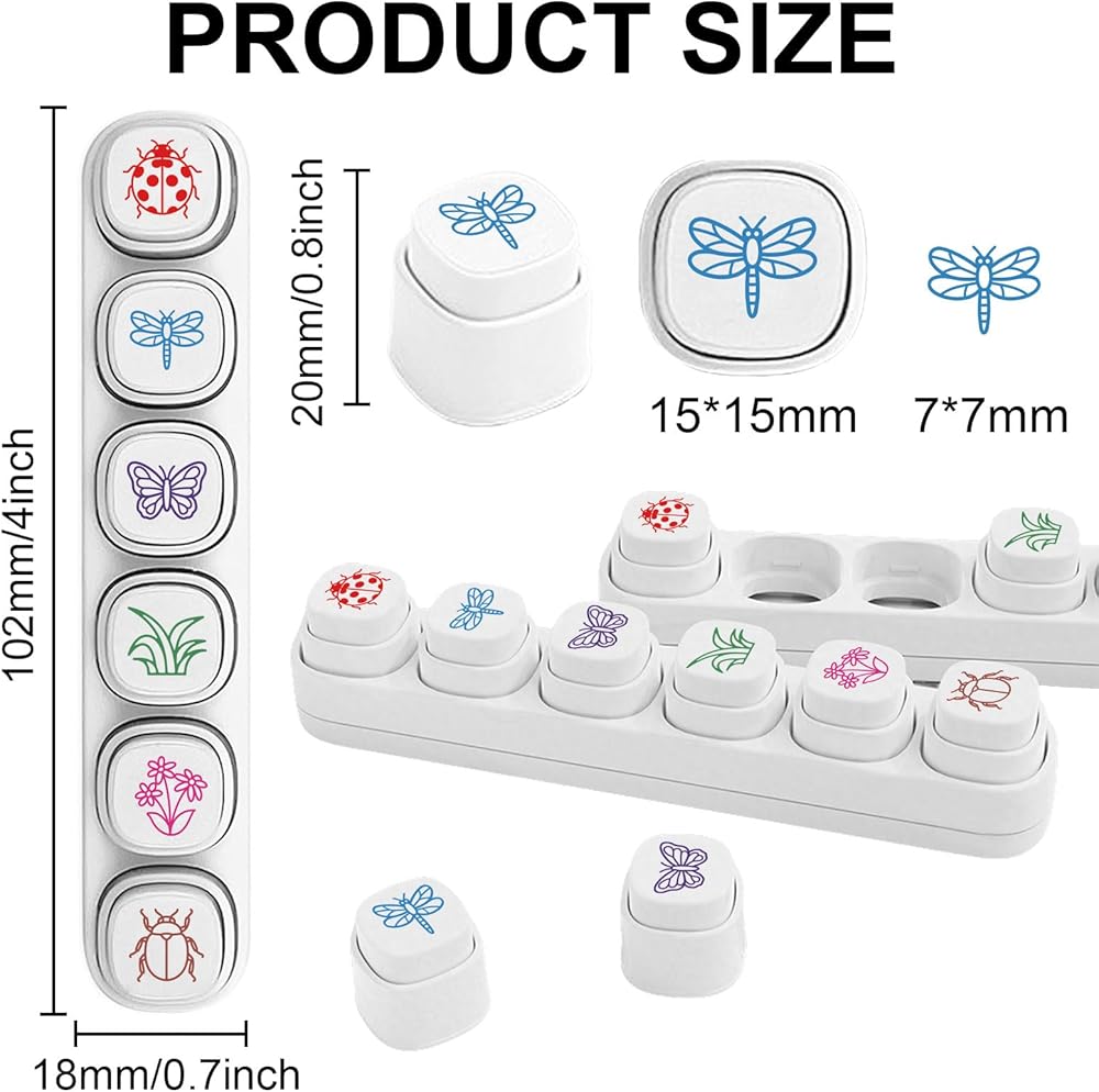 Material: The mini stamps is made of plastic, which is not easily deformed or cracked. The surface is smooth without burrs, and the depth of the pattern is even. Repeatedly stamping is not easy to wear, and it can maintain good use for a long time