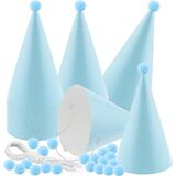24-Pack DIY Party Cone Hats with Pom Poms – Create Your Festive Celebration!