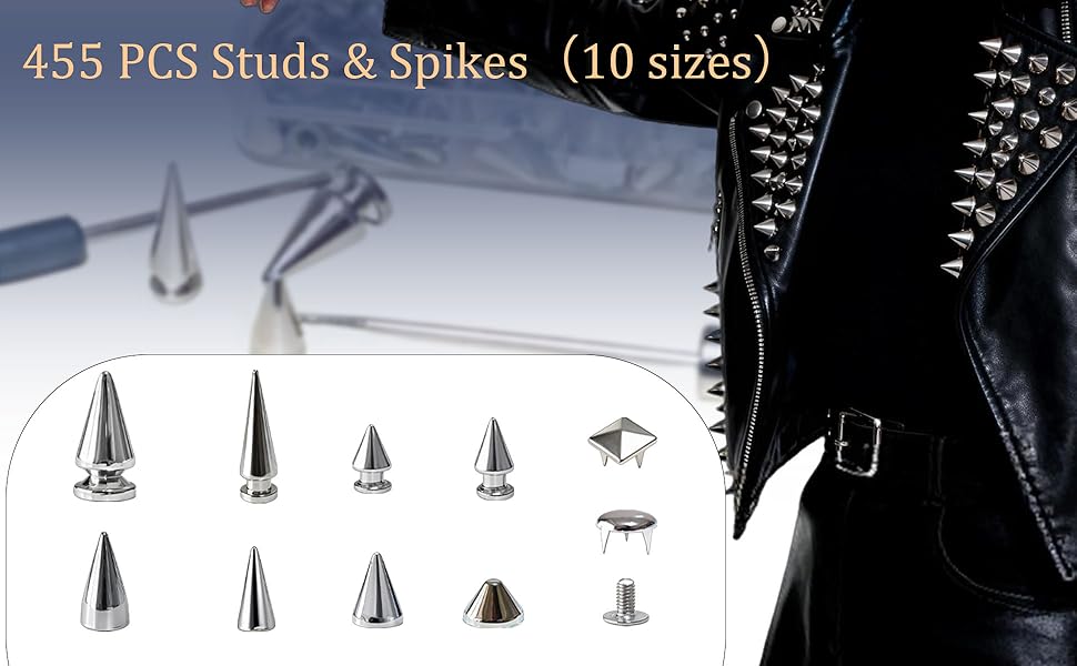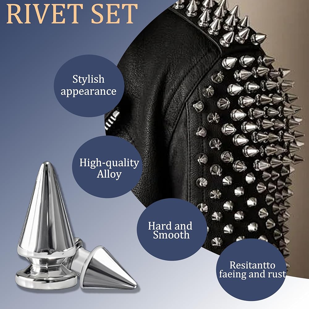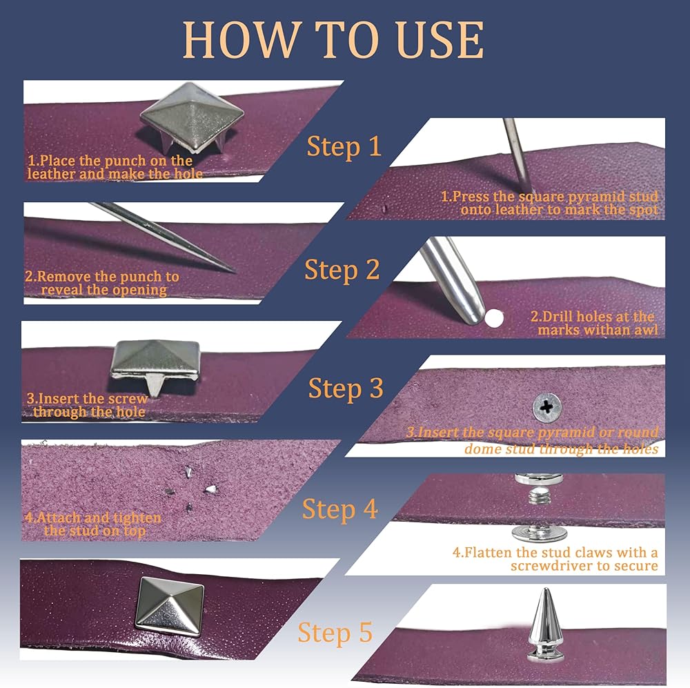 سهلة الاستخدام: تم تصميم جميع مسامير Punk Spikes بحجم مناسب ومناسب، سهلة التركيب، فقط تحتاج إلى ثقب وربطها. إذا كان الجلد سميكًا جدًا بحيث لا يمكن للأزرار اختراقه، فاستخدم المخرز والمثاقب لحفر الثقوب