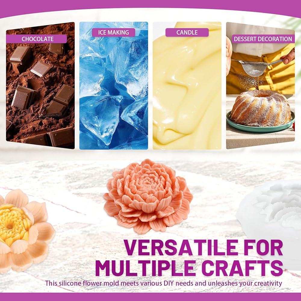 Beyond candle making, it's great for resin art, chocolate/ice molds, soap molds for soap making, and more. Easy to clean, silicone flower molds meet various creative needs in baking, DIY, and home decoration.