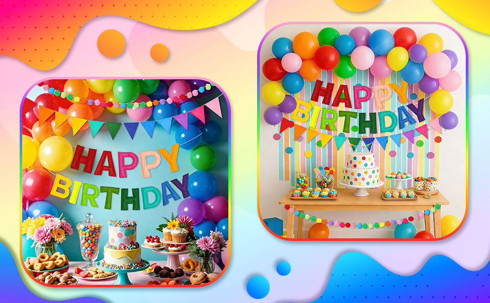 تطبيق واسع: يمكن تعديل المسافة بين الحروف المربوطة مسبقًا بحرية للحصول على المظهر المفضل لديك. من السهل تعليق ديكورات أعياد الميلاد بألوان قوس قزح هذه ومناسبة للاستخدام في الأماكن المغلقة (الجدران، والأغطية، والنوافذ، والفصول الدراسية) وفي الهواء الطلق (الحدائق، والخيام). مثالية لحفلات أعياد ميلاد الأطفال والكبار وحتى الحيوانات الأليفة، فهي تخلق جوًا مبهجًا واحتفاليًا دون عناء
