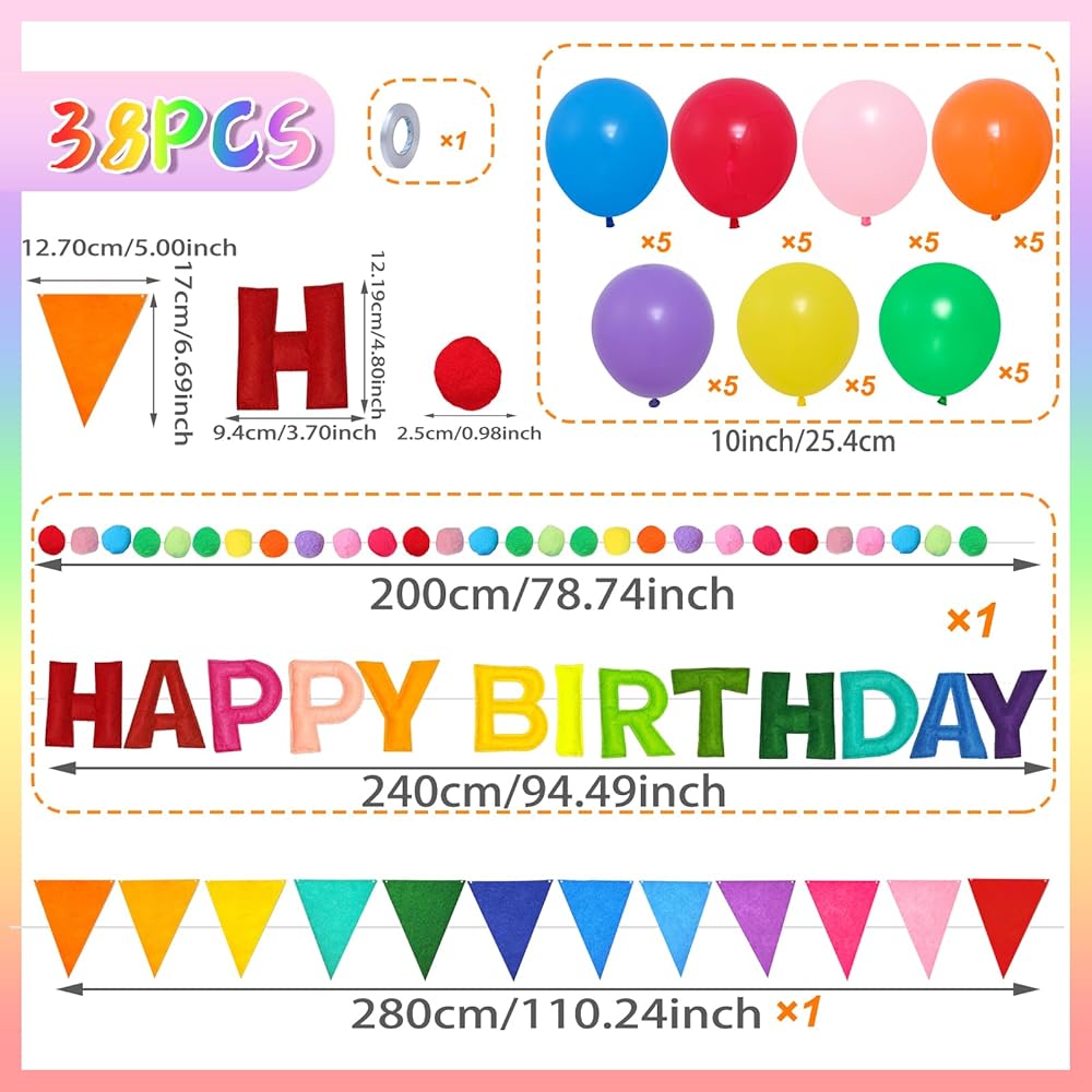 لافتة عيد ميلاد سعيد ثلاثية الأبعاد مُثبتة مسبقًا، 38 قطعة من كرات اللباد، علامة عيد ميلاد سعيد، إكليل قوس قزح بوم بوم، لافتات حفلات الرايات من القماش المثلث، زينة حفلات عيد ميلاد بألوان قوس قزح قابلة لإعادة الاستخدام للفتيات والأولاد والنساء والرجال