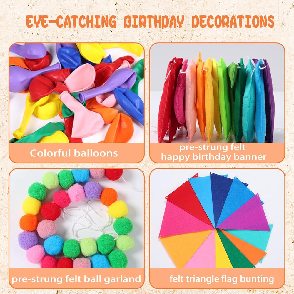 سهلة التركيب: تتضمن العبوة لافتة عيد ميلاد سعيد، وإكليل كرة من اللباد، ولافتة رايات مثلثة، و35 قطعة من البالونات ولفة من الشريط الأبيض. تأتي لافتة الحروف وإكليل الكرة اللباد مربوطة مسبقًا، ولا تحتاج إلى تجميع على الإطلاق - فقط أخرجها وعلقها. بالنسبة للراية المثلثة، نقدم إبرًا وخيوطًا كبيرة للتجميع السريع والسهل