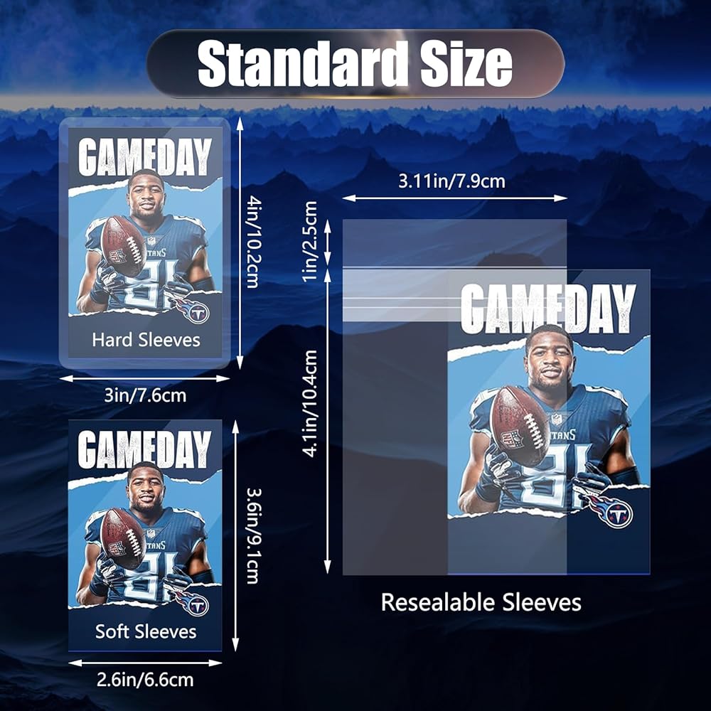 ✅حجم مثالي: محمل علوي للبطاقات بأبعاد خارجية 7.62 سم × 10.16 سم، وأبعاد الأكمام الناعمة 6.35 سم × 8.89 سم، وهي مصممة لتناسب تمامًا بطاقات التداول ذات الحجم القياسي، لذلك يمكنك التأكد من أن بطاقاتك ستبقى آمنة ومحمية.