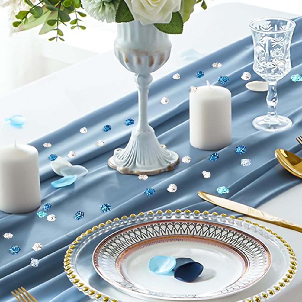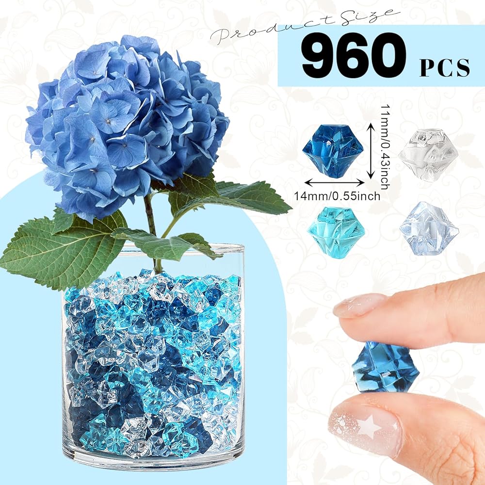 الكمية والحجم: تحتوي كل مجموعة على 960 قطعة تقريبًا من مكعبات الثلج المزيفة، 4 ألوان (أزرق فاتح، أزرق ساطع، أزرق غامق، شفاف)، 240 قطعة من كل لون، 11 × 14 مم؛ كمية وافرة للديكور اليومي أو المشروعات الإبداعية