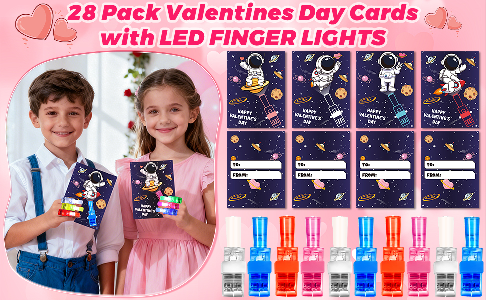 28 حزمة من هدايا عيد الحب للفصل الدراسي للأطفال - بطاقات عيد الحب مع مصابيح LED لموضوع رائد الفضاء، هدايا حفلات عيد الحب لتبادل جوائز المدرسة للأولاد والبنات