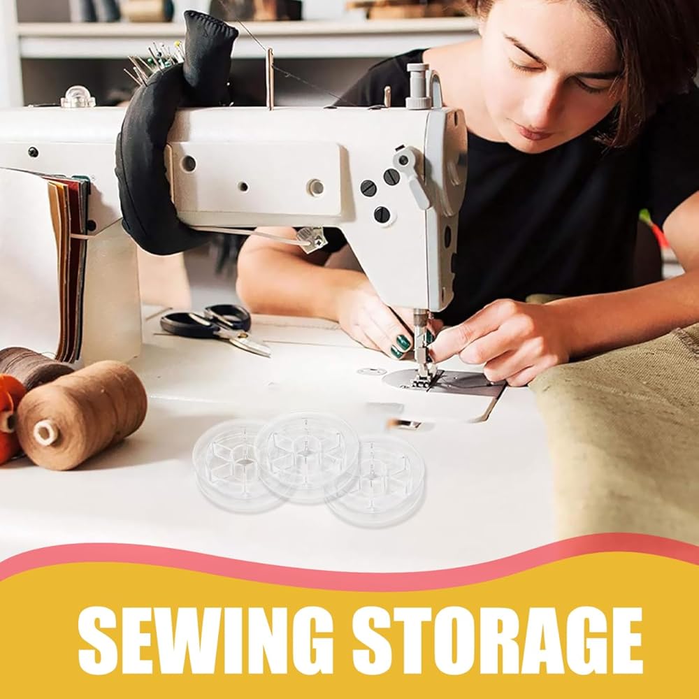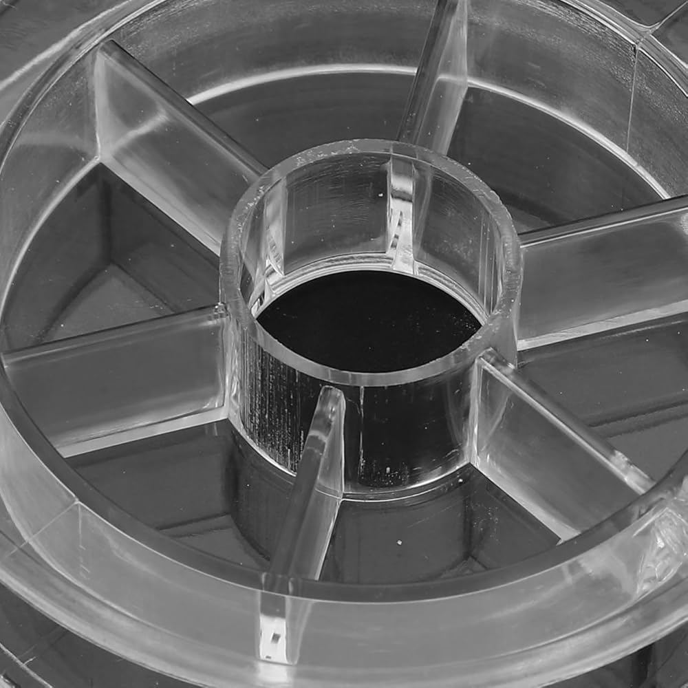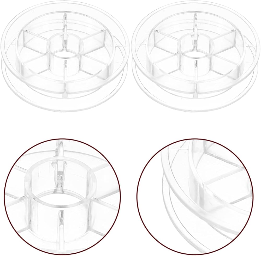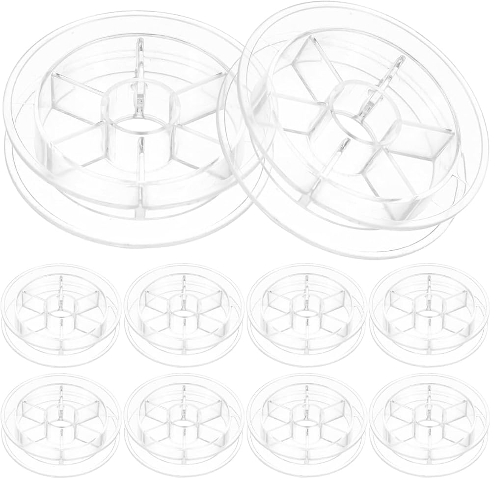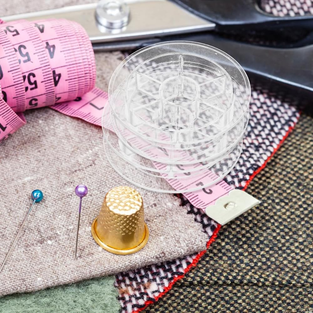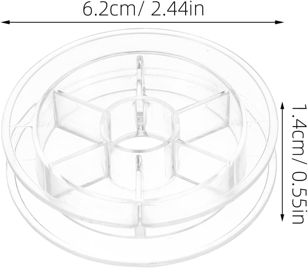 • تصميم شفاف مدمج: يتميز بهيكل بلاستيكي شفاف يبلغ مقاسه تقريبًا 2.44 × 2.44 × 0.55 بوصة، يتيح حامل البكرة هذا التعرف بسهولة على ألوان الخيوط دون فتح الحاويات