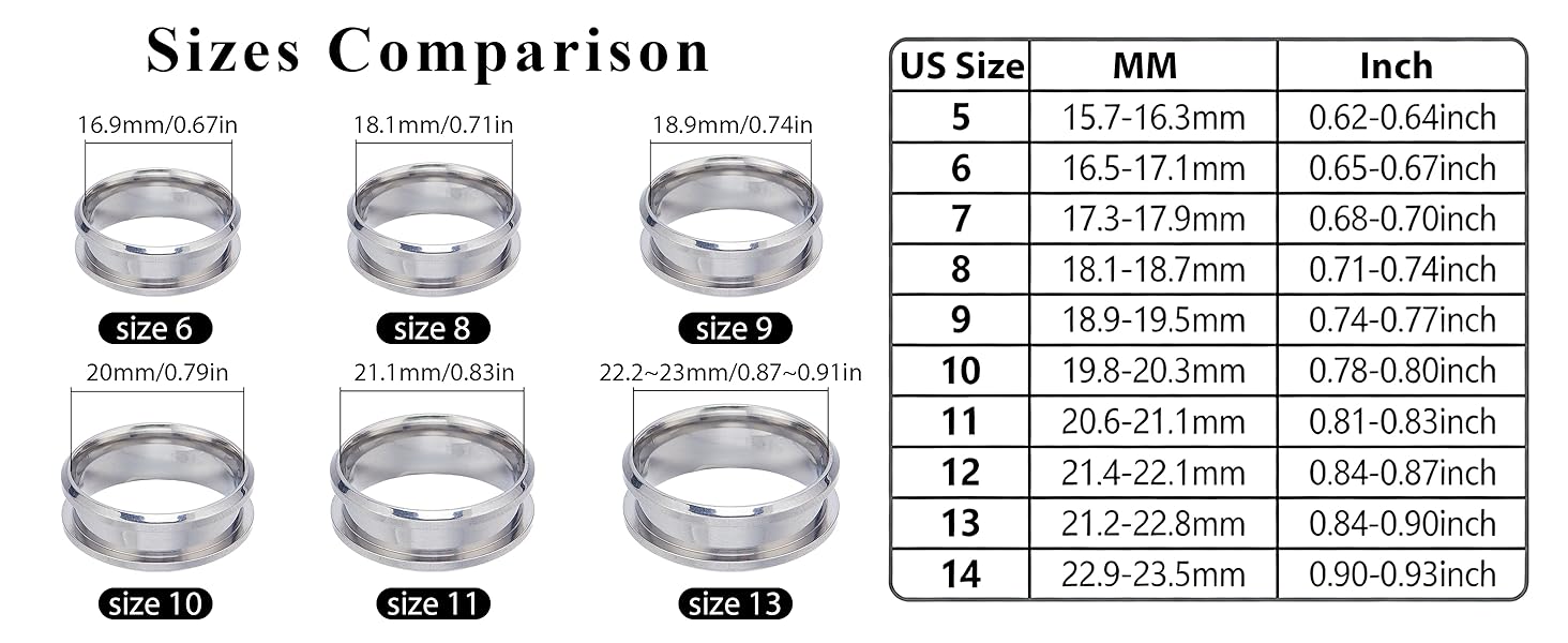 8 مقاسات من الأربطة الحلقية الفارغة: تتضمن العبوة حلقات محفورة في 8 مقاسات، قطعتين في كل مقاس، مثالية للمجوهرات المخصصة، أو مجموعات الأزواج، أو الهدايا الجماعية، لضمان ملاءمة مثالية لكل مشروع