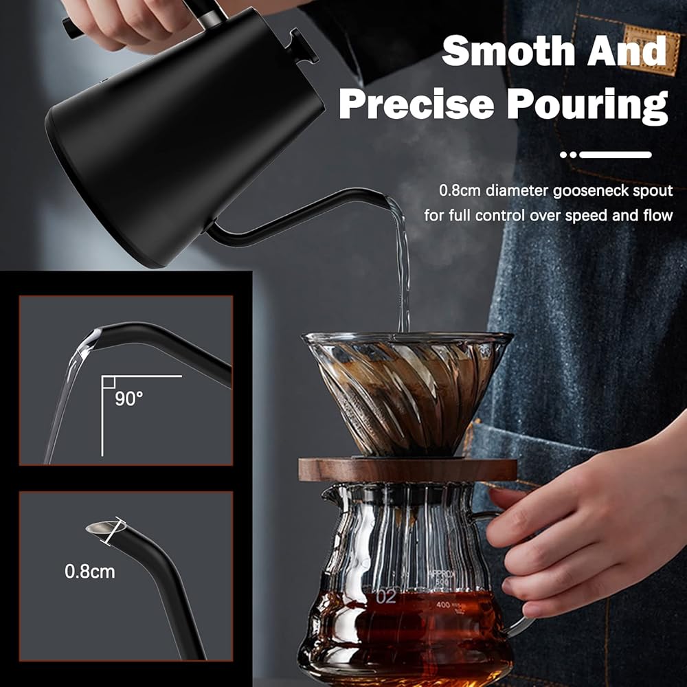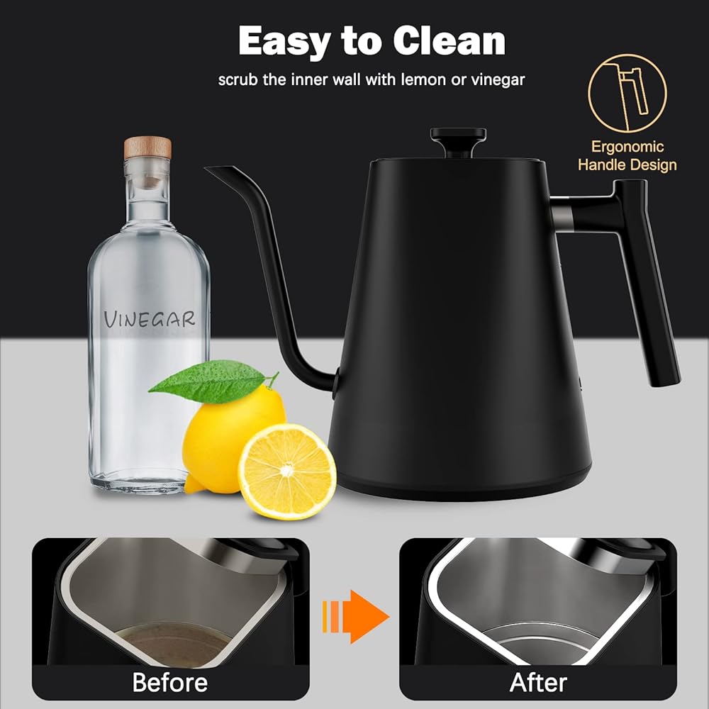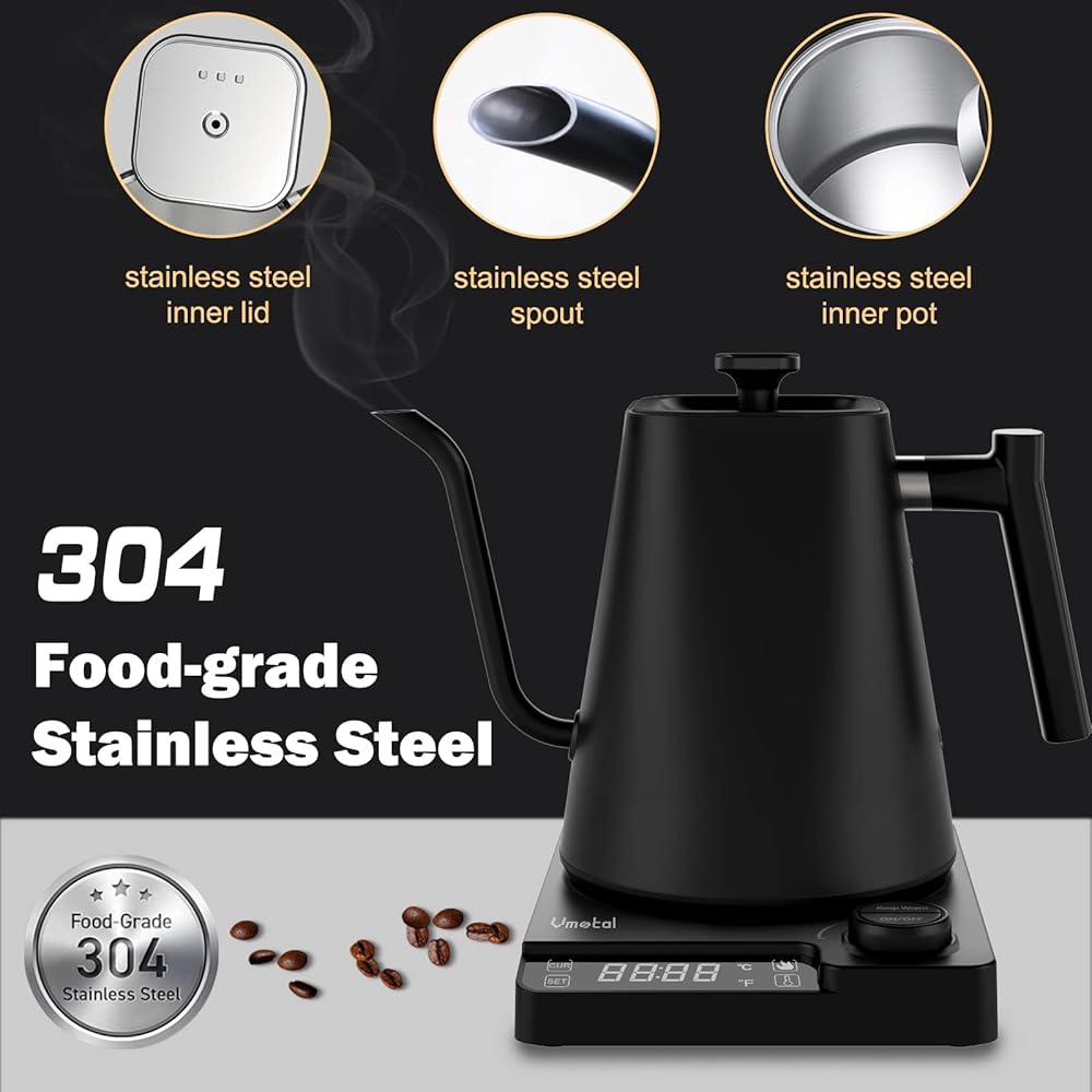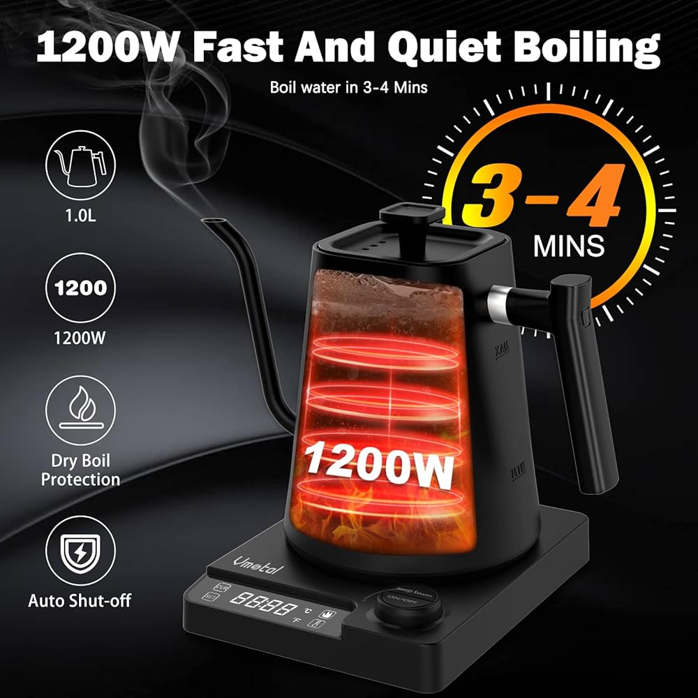 غلاية Vmotal Gooseneck، غلاية كهربائية بقدرة 1200 وات مع تسخين سريع، درجة حرارة متغيرة لتخمير الشاي والقهوة، من الفولاذ المقاوم للصدأ، مقاومة للتسرب، تحافظ على الدفء لمدة 24 ساعة، إيقاف تلقائي، حماية ضد الجفاف، 0.9 لتر